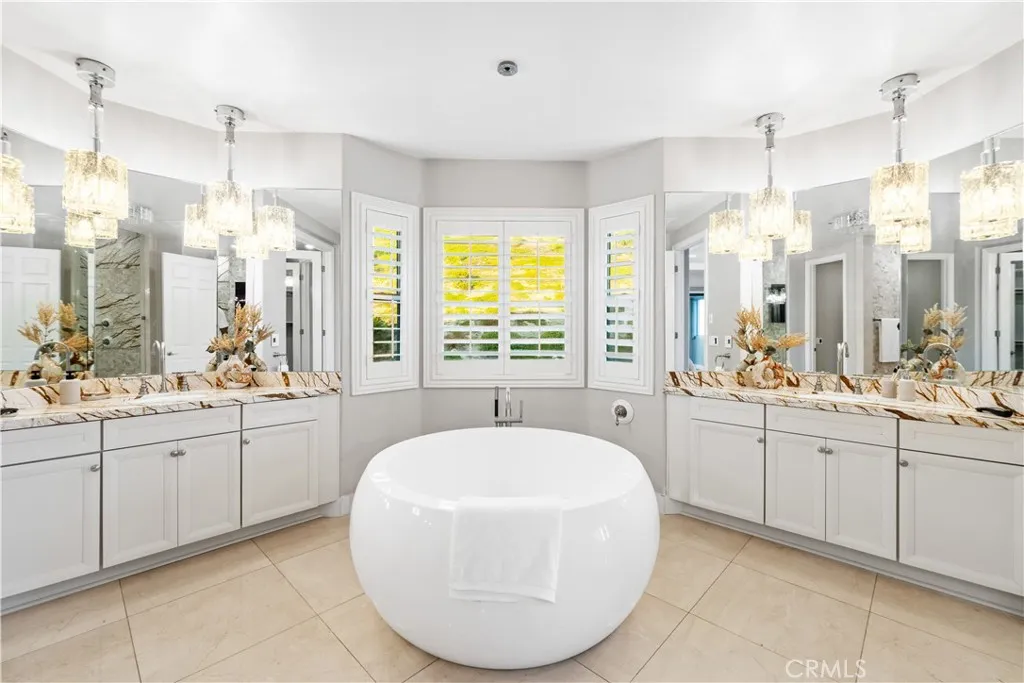 Exquisite Toll Brothers estate in the prestigious Amalfi Hills community of Yorba Linda. This expanded luxury residence offers 6 bedrooms and 6.5 baths on over 30,000 square feet of lot. Originally 5,826 square feet, the home has been thoughtfully enhanced with permitted additions, including a private upstairs gym, office, additional ensuite bedroom and California room, bringing the total to nearly 6,600 square feet of refined living space. The grand entry welcomes with soaring ceilings, sparkling crystal chandeliers, all-tile and marble flooring, marble molding, striking marble pillars, a travertine accent wall, and marble fireplace. Indoor/outdoor living is highlighted by lanai sliding doors and a custom dual-panel retractable screen system with blackout and mesh options. Crystal lighting throughout enhances the timeless elegance. The Show kitchen features premium granite countertops, all Miele built-in appliances including coffee maker, microwave, 6-burner range with oven, designer hood, dishwasher, and an 8-ft floor-to-ceiling wine and beverage cooler. A separate chefs prep kitchen with Samsung appliances provides additional convenience for entertaining. Two en-suite bedrooms are located downstairs. Upstairs, one wing is dedicated entirely to the primary retreat with panoramic views, private gym, office, movie lounge, and a spa-inspired bathroom featuring a custom round soaking tub. The opposite wing offers three ensuite guest rooms, creating a thoughtful and private layout for all. Resort-style outdoor living includes a pool with water wall and connected heated spa, ou