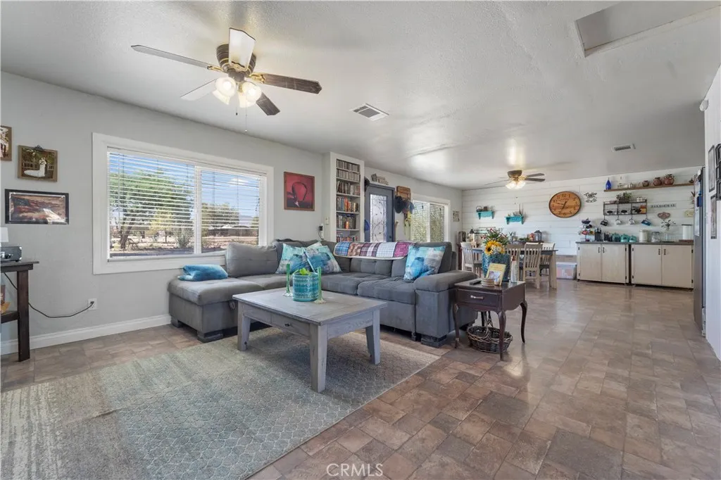 Beautiful Newberry Springs home! The photos say it all, so let's get straight to the details! Currently a 2 Bedroom, 2 Bath (originally 3 bedroom, one bedroom was converted to a living room, can be a 3rd bedroom again if you add 2 walls and a door) This is a frame built home on 2.14 acres, fully fenced, with easy access from a paved road just off of Valley Center Rd. This home has an abundance of features including: Solar panels with battery storage (buyer to assume $208 per month lease, cheaper than an electric bill and it builds equity), metal roof, laminate wood flooring, upgraded kitchen cabinets, all appliances included! The home also has butcher block countertops, central heating and air (only 3 years old), tankless water heater (endless hot water), and mature trees and landscaping on a watering timer. The property also offers ample space for outdoor activities including a large storage shed that has been converted into a craft room with lighting and air conditioning (which could also be converted to a guest house). The detached workshop has two roll-up doors and it's own separate double gated driveway. Raised flower beds and water system are available in the greenhouse that is on the property, making it easy to start your own garden. You can also bring your horses and chickens as the home has a chicken coop and horse corral. After a long day, relax on the covered back patio in the hot tub which is only 1 year old and is included in the sale. The well and septic are in great condition and the gravel driveway will make parking a breeze! It doesn't get much better than
