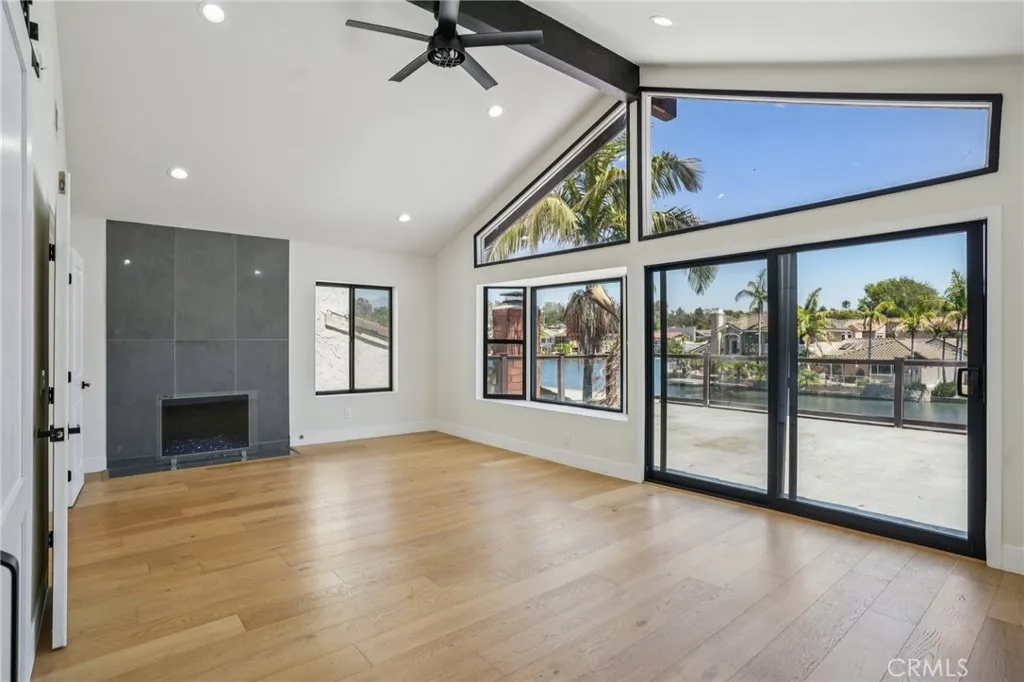 Experience the Best of Waterfront Living on the Keys! Where timeless Spanish-inspired architecture meets stylish, contemporary design. From the moment you step through the private gated entry and double front doors, youll feel the unique charm this lakefront home offers. The open-concept layout features White Oak flooring throughout, seamlessly connecting the spacious living areas with stunning lake views as your backdrop. The thoughtfully designed kitchen opens to the main living and dining spaces, creating a perfect environment for hosting and entertaining. Expansive pocket doors off the living room lead to your own backyard retreat, complete with private boat dock and canal and main channel viewspositioned for privacy with no direct neighbor across the water. Downstairs, you'll find a versatile bedroom and full bath ideal for guests, as well as a separate laundry room for added convenience. A striking floating staircase takes you to the second level, where floor-to-ceiling windows bathe the home in natural light. Upstairs, a spacious loft offers flexible useperfect as a media room, office, or play area. The generous primary suite is a true sanctuary, featuring a cozy fireplace, a wall of windows overlooking the lake, and a private balcony to enjoy peaceful sunset views. The spa-like en-suite bath boasts a walk-in shower, standalone soaking tub, and an oversized walk-in closet with skylight. Two additional bedrooms and a full bathroom complete the upper level. This is your opportunity to own a slice of lakefront luxury in Lake Forests highly sought-after Keys community.