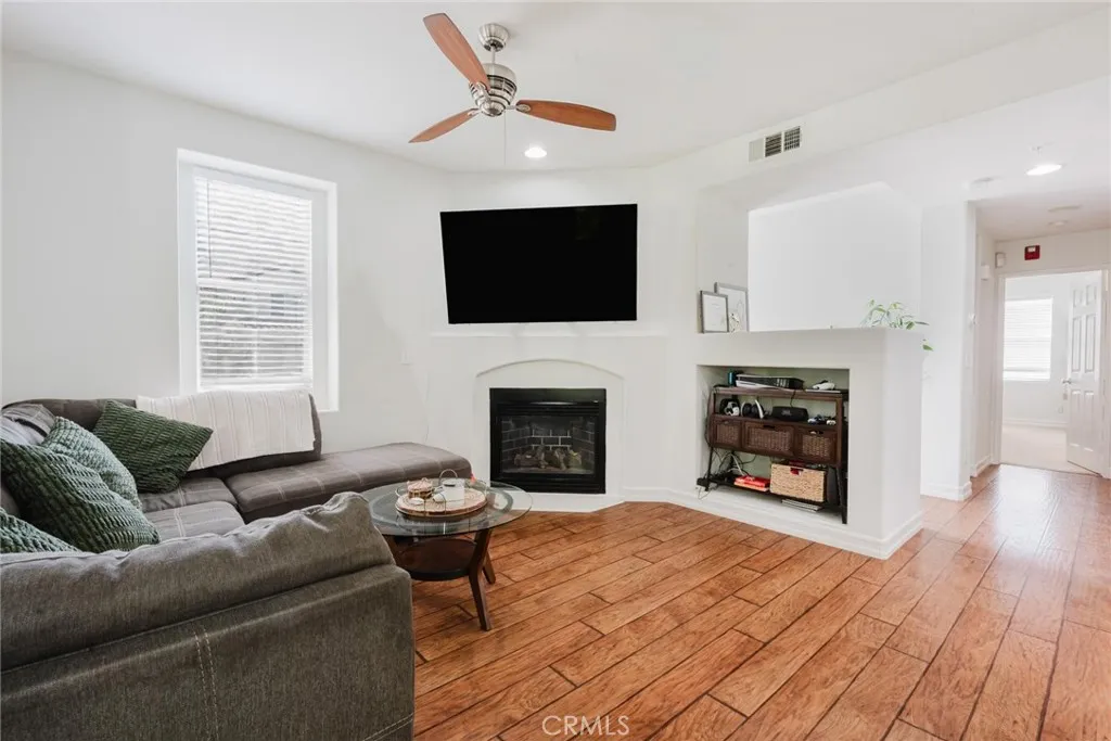 As one of the most popular townhome communities in the area, Village Walk Valencia provides an excellent location for people to enjoy nearby parks, shopping, dining and more! This particular townhome on Abbey Glen lives like a tri-level home with an attached 1-car garage on the first level. On the second level, you will find the primary bedroom, family room, dining room, full bath and a freshly painted kitchen. Stunning hardwood floors in the living and dining areas with canned lighting throughout. Covered balcony large enough for a grill and seating. Indoor laundry room with linen storage as well. The oversized secondary bedroom is the only room on the third level with plenty of natural lighting. The home also comes with an additional covered parking space. NO MELLO-ROOS and the HOA amenities include beautiful landscaping and a pool & spa only accessible to the Village Walk community. Proximity to hiking trails, bike paths, and Valencia Town Center, this is a MUST see!