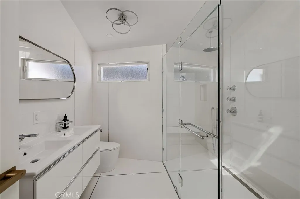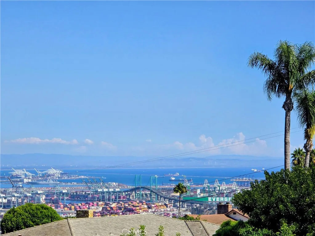 See the 360 Tour: https://bit.ly/3JMU10X** Clean-lined, single-story ranch home with detached 540 sqft ADUfully renovatedset behind a private gated drive with sweeping harbor, city and ocean views from nearly every room and the expansive grassy backyard. Renovation focused on quality systems and materials: new electrical, HVAC, plumbing, Milgard/Western windows, Tesla solar panels & 2 EV chargers. Enjoy the Long Beach skyline and LA Harbor as you enter through the oversized glass pivot door into an open floor plan designed for living and entertaining. The chefs kitchen features black-and-white Dalmatian marble, Rohl fixtures, a large island and a suite of Viking appliances: 6-burner range, double ovens, counter-depth refrigerator and dual dishwashers. Wide-plank hardwood runs throughout; floor-to-ceiling sliders and bifold doors connect the interior with the backyard. A two-way glass fireplace anchors the great room; motorized curtains, recessed LED lighting and built-in AV are integrated. Additional features include a stylish powder room and large pantry/laundry with two Samsung washer/dryer sets and a utility sink. Two bedroom wings offer privacy and flexibility. The primary suite enjoys harbor views, fireplace, vaulted ceiling beams, dual showers, spa bath with marble tub and quartz counters, electric skylight, and a custom walk-in dressing room. The secondary wing has four bedrooms (or office/gym), including one suite with walk-in closet and 3/4 bath, plus an oversized hall bath with rose-gold fixtures. Outdoors, a rose garden and mature avocado tree complement the yard