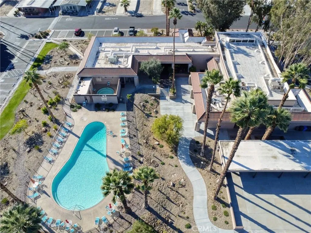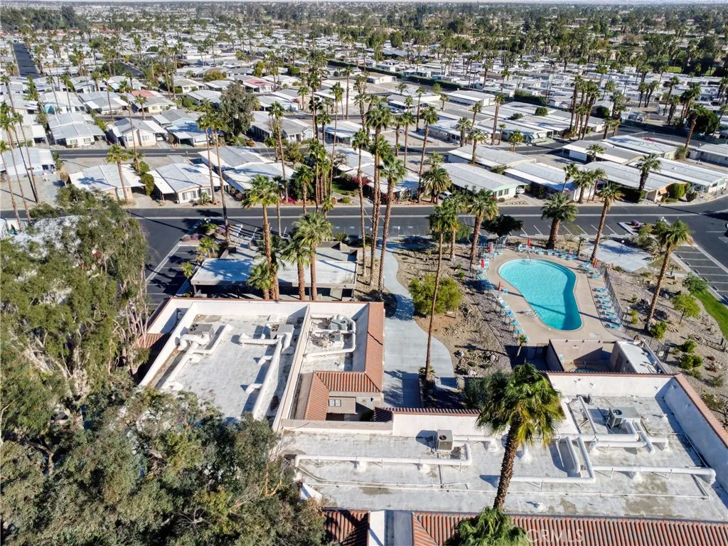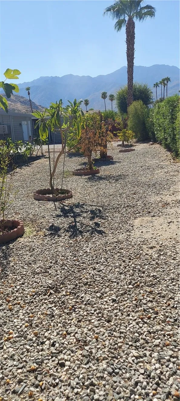 One of The largest lots in El Dorado Palms, at 5,266 Sq Ft, allows you to either add on to the existing house, add on an attached in-law suite, or put a brand new house on the lot. The house has two bedrooms, two baths, Family room, with wet bar, formal living and dining rooms, large covered patio and covered carport. All this in a gated premier 55+ complex on fee land, you own the land, with pools, spas, tennis courts, club house with gym, and RV parking for residents. The 1440 Sq Ft home also has a separate laundry room, fully equipped kitchen with double wall ovens, gas cooktop, and refrigerator. For Just $249,000, you won't find a better bargain in South Palm Springs. Enjoy the mountain views from the Living Room also.