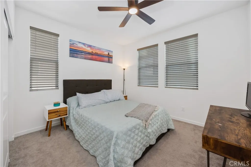 TURNKEY MODERN FARMHOUSE STYLE | 4 BED + LOFT | DOWNSTAIRS BED + BATHROOM | LOW-MAINTENANCE BACKYARD Located in the highly desirable Bedford community of Corona, this gorgeousoriginal-owner home offers understated luxury throughout. The bright and open floor plan begins with a spacious foyer. The gourmet kitchen features a large center island with an abundance of counter space,quartz countertops, subway tile backsplash, white shaker style cabinets, GE stainless steel appliances and farmhouse sink. The open living and dining areas are perfect for entertaining, with a custom built-in sideboard for extra counterspace, luxury vinyl plank flooring, recessed lighting and high ceilings. The main floor also features a private bedroom and bathroom, perfect for guests. The large primarysuite features high ceilings, custom window shades, ceilingfan, walk-in closet, large bath with a dual sink vanity, shower and separate water closet.A large upstairs loft offers plenty of additional living space. Two additional bedrooms share a large full bath with dual sink vanity and a private tub/shower area. Also upstairs you'll find a separate laundry room offering side-by-side laundry and storage shelf.Additional highlights include a 2-car garage with epoxy floors, dual zone central air/heating, and energy-efficient features such as an owned 10 panel 4.05 KW solar system with 26kWh of battery backup, tankless water heater and reverse osmosis water filtration system. Enjoy access to all the Bedford community resort-style amenities, including; three pools and spa, clubhouses, gym, dog park, walking