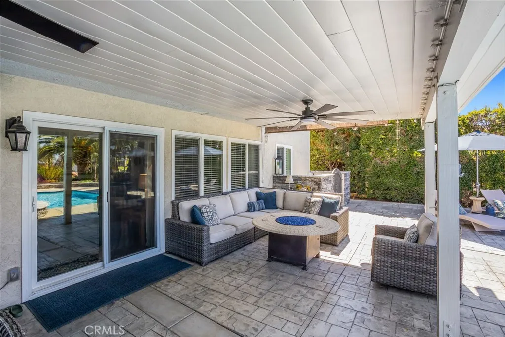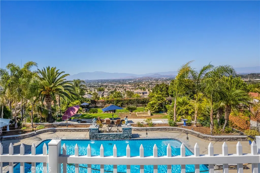 Located in the Lake Hills Community on Lake Knoll Parkway is a rare property, being one of only seven lots offering full useable land. Home features a beautiful slate walkway leading to wrought iron and glass panel double doors. Built in 1988 with 4 bedrooms and 3 bathrooms (one bedroom and one bathroom are conveniently located on the main level). 2,627 sq. ft. of living space and situated on a 16,553 sq. ft. lot. Beautiful formal living room with a custom fireplace, separate family room also has a fireplace with custom oak cabinets. Formal and informal dining. Updated spacious kitchen featuring black pearl granite counter tops and backsplashes. Stainless steel appliances and freshly painted cabinets. A custom wood and wrought iron staircase leads upstairs where you will find a large bonus room with built-in cabinets and surround sound speakers. The primary bedroom has French doors leading to the balcony looking over the multi-tiered backyard with unobstructed views of city lights and mountains. Spacious primary bathroom has a large glass block wall walk-in shower featuring multiple shower heads and a separate soaking tub. There's also a custom dual sink vanity with granite counter top. Two additional bedrooms and a stunning bathroom with a glass walled walk in shower completes the upstairs. Rear yard has a beautiful pool and spa with a double fountain feature. Huge custom built 36' X 20' covered patio and balcony extends the outdoor living area. Covered patio has a built-in bar with Kegerator, BBQ and sink. Second level has a concrete patio area and horseshoe pit. Third le