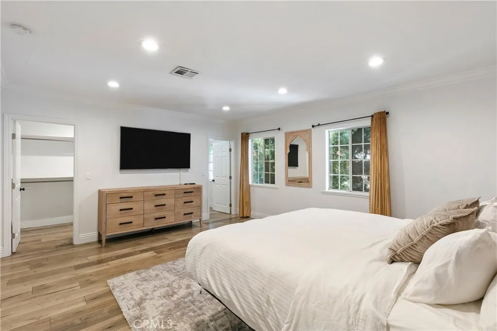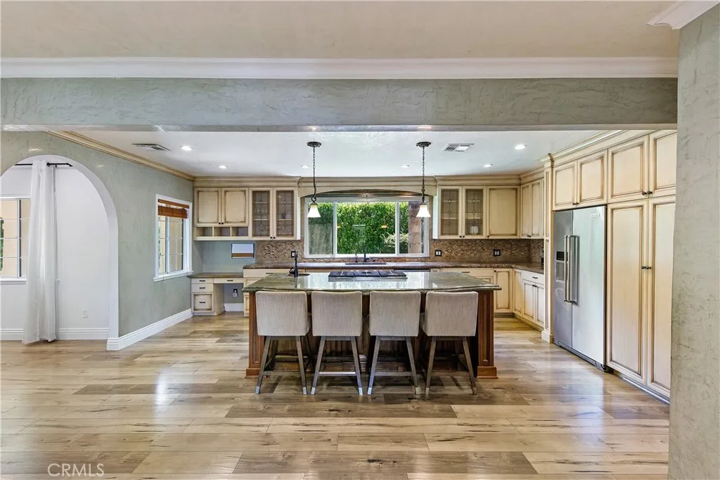 Experience refined California living in this extraordinary 3-bedroom, 3.5-bathroom residence, offering 2,454 sqft of sophisticated interiors on a 7,900 sqft lot. Tucked away in prime Studio City, this home masterfully blends elegance, comfort, and privacy, creating a true retreat just moments from the citys most iconic destinations. The heart of the house is the chefs kitchen, boasting a grand center island, professional-grade appliances, bespoke wood cabinetry, and rich granite countertops. Bathed in natural light, this culinary haven flows effortlessly to an outdoor deck and a covered patio, setting the stage for unforgettable gatherings and intimate al fresco dining. The two sumptuous en-suite bedrooms feature spa-inspired baths and custom walk-in closets. At the same time, the lower level unveils a grand primary suite, a serene sanctuary with a lavish bathroom and expansive closet space. This versatile level offers endless possibilities, whether as a private guest retreat, an elegant home office, or a state-of-the-art playroom. The grounds are equally captivating. A meticulously designed front garden with lush, low-maintenance greenery sets the tone, while the backyard redefines luxury entertaining. Multiple hosting areas, a built-in BBQ, and immersive outdoor surround sound create the perfect ambiance. Indulge in the bubbling spa, sway in the hammock under twinkling string lights, or savor the harvest from your own apple, fig, and avocado trees. Every detail has been carefully curated to strike a balance between relaxation and grandeur. Ideally located near Universal S