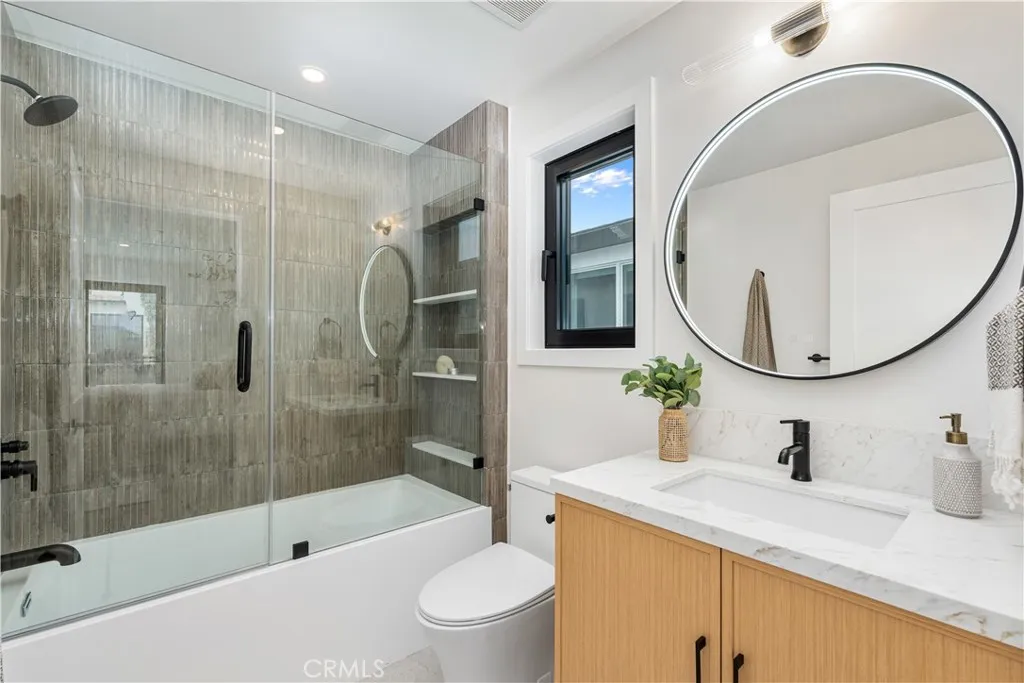Welcome to 3517 Walnut Avenue, a 5-bedroom, 5.5-bath home in the Tree Section of Manhattan Beach offering 3,240 square feet of living space on a 4,645 square foot lot. The main level features an open kitchen with a large quartz countertop, premium Thermador appliances, custom cabinetry, and seamless flow into the dining and family areas. A sliding door in the family room opens to the patio for easy indoor-outdoor living. The living area is centered by a modern fireplace, creating a comfortable gathering space. Upstairs, the primary suite includes a private balcony, generous closet space, and a bathroom with dual sinks, a soaking tub, and a walk-in shower. Each additional bedroom features its own en-suite bathroom, providing privacy and convenience for family and guests. The home is pre-wired for a complete entertainment system and security. Outdoor areas are designed for relaxation and entertaining with a built-in barbecue, fire pit, and patios that enjoy Tree Section canopy views. With wide-plank floors, clean finishes, and thoughtful design throughout, 3517 Walnut Avenue offers modern comfort in a prime Manhattan Beach location close to top-rated schools, parks, and the beach.