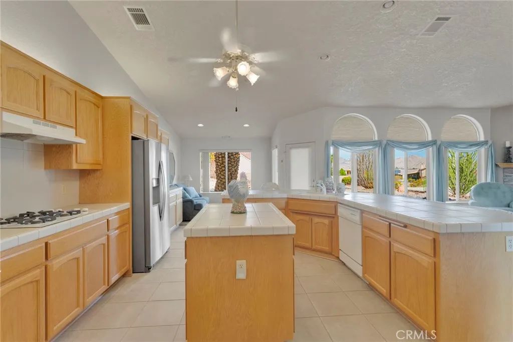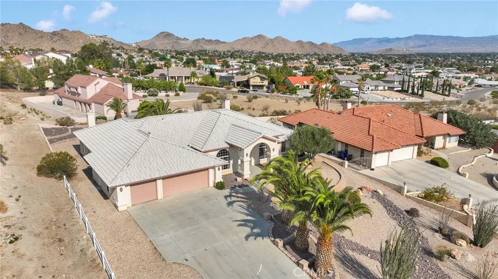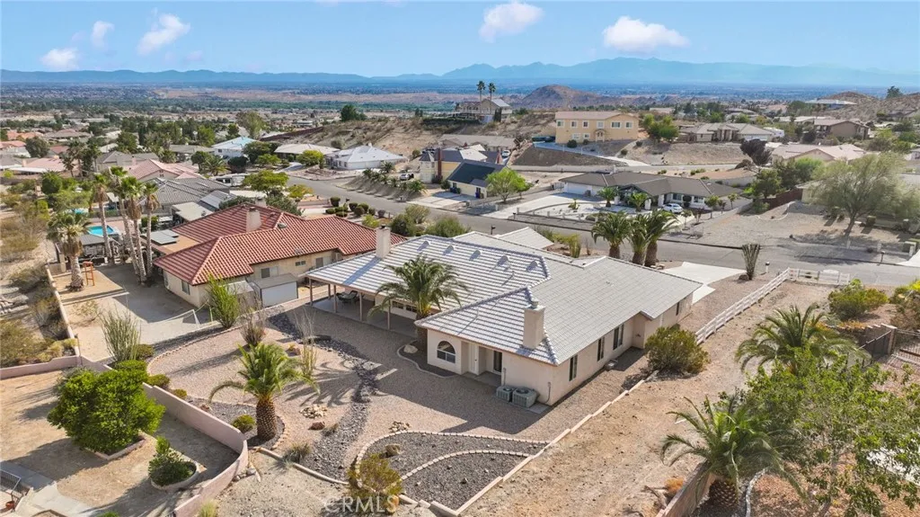 PRICE IMPROVEMENT!!! Custom-Built Deserada Home with Stunning Views & Timeless Charm! Pride of ownership shines throughout this meticulously maintained, custom-built Deserada home located in one of Apple Valleys most desirable neighborhoods. Offering over 3,000 sq ft of living space, this spacious 4-bedroom, 3-bathroom home is designed for both comfort and elegance. Step inside and youre greeted by abundant natural light, formal living and dining areas, and a warm, inviting atmosphere. The open-concept kitchen and great room are ideal for entertaining, complete with a cozy fireplace perfect for cool desert evenings. Enjoy your morning coffee in the sunny breakfast nook while soaking in breath taking views of the valley. The split floor plan ensures privacy for everyone. The luxurious primary suite features high ceilings, a fireplace, direct backyard access, a spacious bathroom with dual vanities, a soaking tub, tiled shower, and a generous walk-in closet. Step outside to your own oasis with a covered patio, low-maintenance desert landscaping, and beautiful views. The property also includes a 3-car garage with ample driveway parking. Nestled on a peaceful street with mature palms, octotillos, and an olive tree, this home offers a sense of seclusion while remaining conveniently close to St. Marys Hospital, shopping, restaurants, and the 15 freeway. Dont miss your chance to own this Apple Valley gema perfect blend of comfort, style, and location!