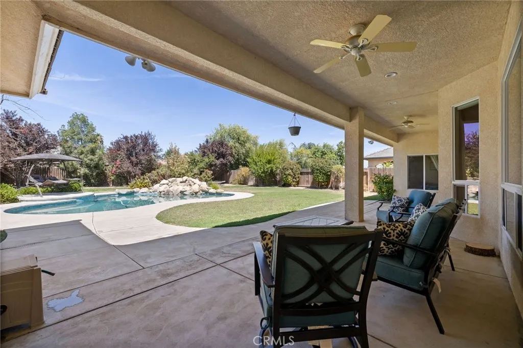 Nestled away on a spacious cul-de-sac lot this stunning 4-Bedroom Home with Pool in Desirable Northwest Bakersfield is ready to go. Discover this impeccably maintained 4-bedroom, 3-bathroom home for sale in Northwest Bakersfield, located in one of the areas most sought-after neighborhoods. This spacious residence features a popular great room floor plan with soaring 12- and 10-foot ceilings, creating a bright and open atmosphere perfect for comfortable living and entertaining. Large, energy-efficient windows provide beautiful natural light and overlook a private backyard oasis with a sparkling inground pool and waterfall. The expansive living area includes a cozy gas fireplace, while the formal dining room and open-concept kitchen make hosting a breeze. The chefs kitchen boasts an island with vegetable sink, a breakfast bar, and ample counter space plus a sunny breakfast nook for casual dining. Each of the four bedrooms is thoughtfully designed for privacy and features individual climate control. Two bedrooms share a large bathroom with walk-in closets. The luxurious primary suite offers an oversized walk-in closet, perfect for all your storage needs. Step outside to enjoy a covered patio, perfect for outdoor dining, and a spacious 15,000+ sq. ft. lot ideal for entertaining or relaxing. Additional highlights include a 3-car garage, upgraded finishes throughout, and a location that offers top-rated schools, parks, and easy access to shopping, dining, and major roadways. Dont miss this incredible opportunity to own a move-in ready home with a pool in Northwest Bakersfield a
