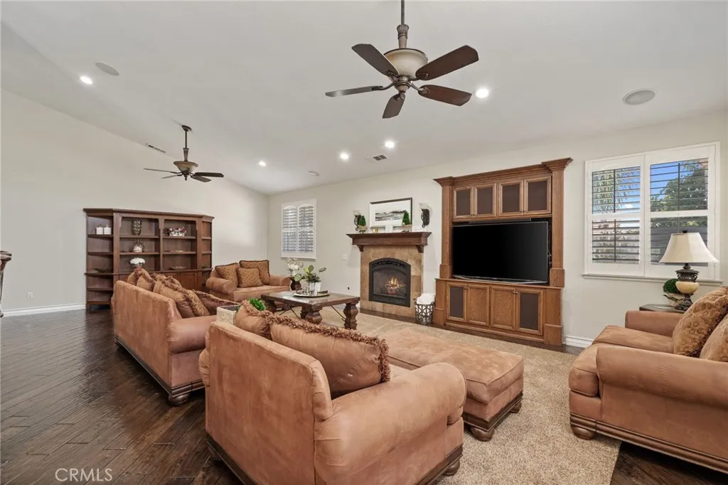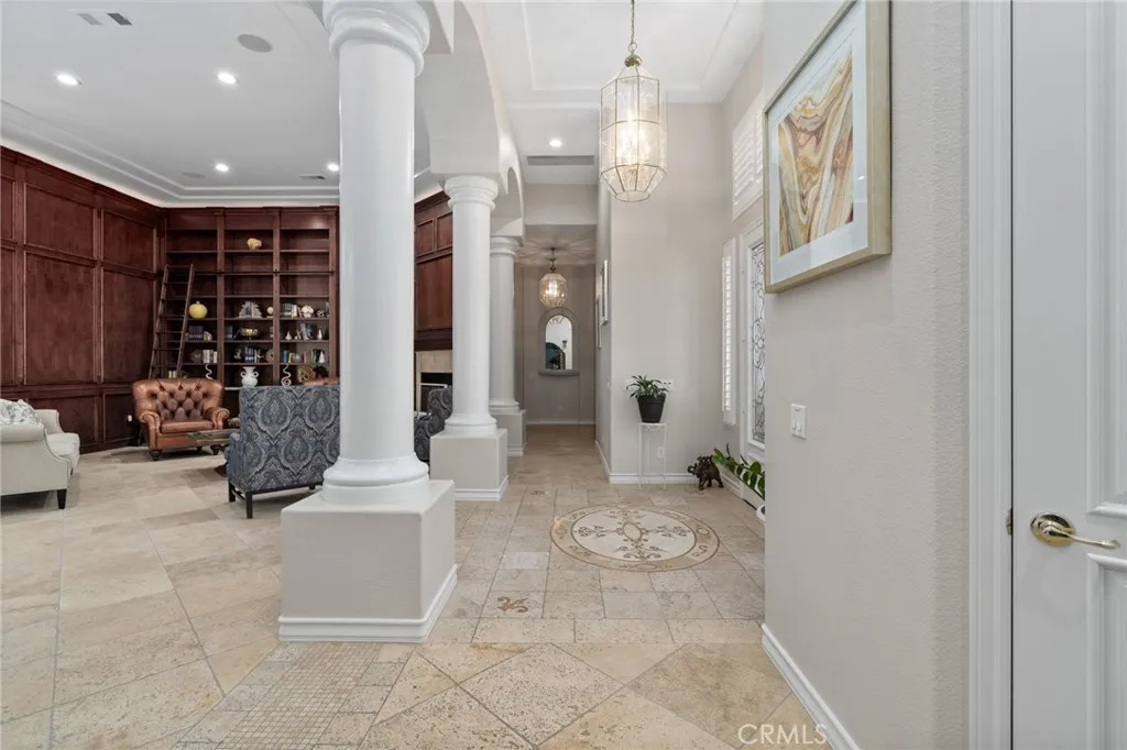 Welcome to The Orchards by Amberhilla stunning single-story estate offering nearly 4,000 sq ft of luxury living on almost half an acre. This 5-bedroom, 4-bath home features soaring ceilings, an open floor plan, and elegant finishes including crown molding, plantation shutters, custom woodwork, and travertine flooring. The chefs kitchen boasts a large island with farmhouse sink, granite counters, and a spacious breakfast nook that opens to the family room. The primary suite is a true retreat with vaulted ceilings, fireplace, spa-inspired bath, and custom cabinetry. Designed for entertaining, the backyard showcases a rock saltwater pool with waterfalls, a covered patio with fans and built-in stereo, gazebo, and shuffleboard court. Gated RV parking and a 3-car garage with epoxy floors complete this one-of-a-kind property. Located in highly desirable South Corona, this home offers access to award-winning schools including Santiago High and Orange Elementary. Enjoy nearby shopping, dining, Dos Lagos and The Crossings, golf courses, parks, and easy freeway access to the 15 and 91perfect for commuters. This is luxury living at its finest in one of Coronas most sought-after neighborhoods.