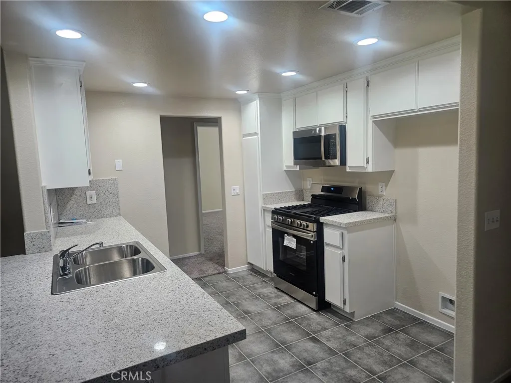 Here's an opportunity to own a sparking pool home in Moreno Valley that is in perfect move-in condition! The single-story floor plan features 3 bedrooms, + bonus room with potential or 4th bedroom, 2 baths a living room with a fireplace and ceiling fan that is open to the kitchen, making this home ideal for entertaining or family gatherings. New carpeting, flooring, fresh paint and new Low E energy efficient windows throughout. New bathroom vanities and fixtures. The kitchen features inset, overhead lighting, new counters. New appliances: Stainless Samsung 5-burner 6.0 cubic smart gas range with integrated griddle + new fingerprint resistant Samsung stainless dishwasher. Breakfast nook is just off the kitchen. All bedrooms have ceiling fans. The primary bedroom features ensuite updated full bath. Tile roof, Central heat and air-conditioning. There is new concrete pool decking in the back yard. This home sits on a large lot with plenty of off-street RV or truck parking. This home would be a good fit for families or individuals who enjoy entertaining and desire a move-in-ready property with modern updates and a pool. The large lot and RV parking are a bonus for those with extra vehicles or storage needs