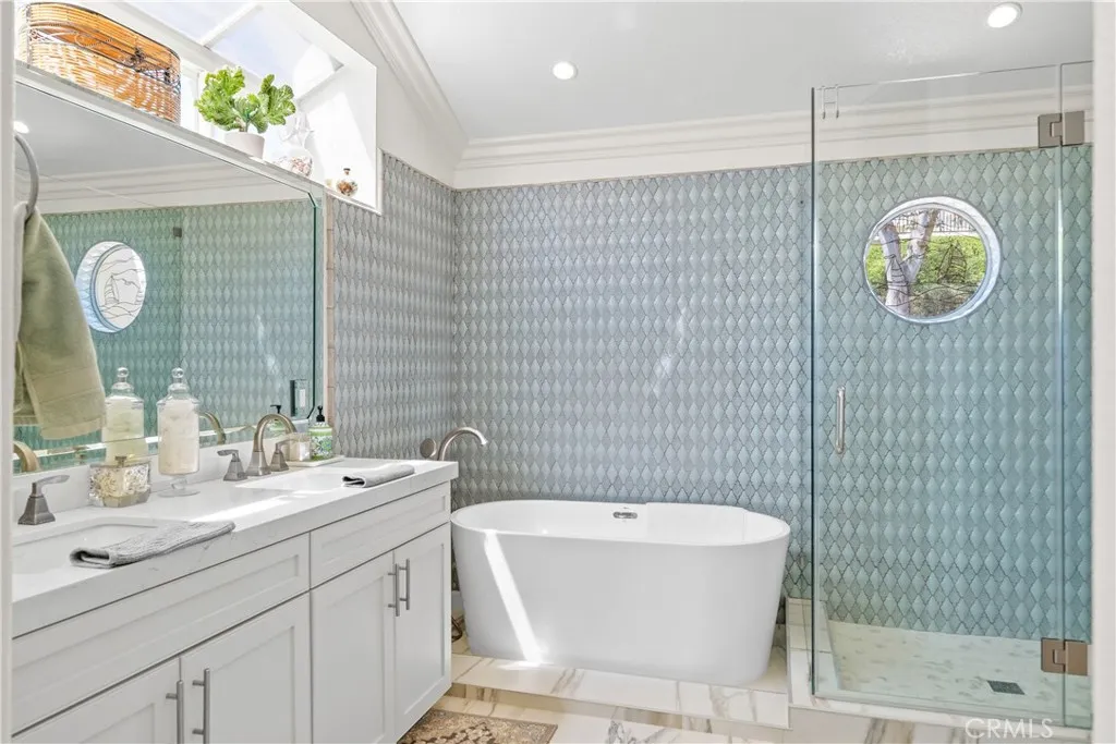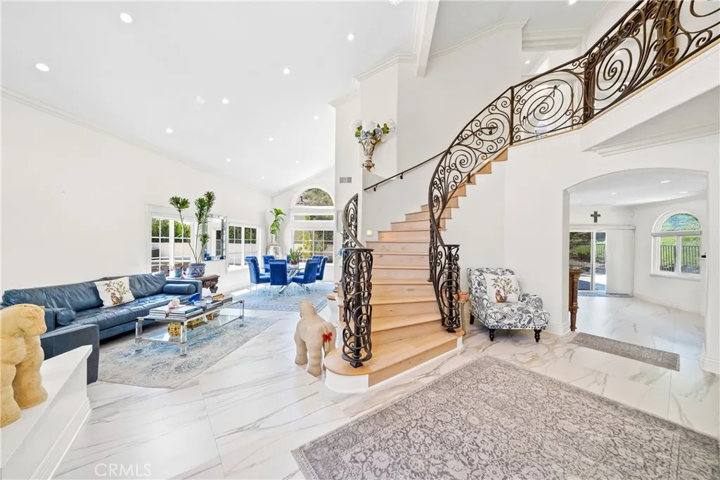 Absolutely breathtaking renovated residence situated on an interior end of a single loaded cul-de-sac street on a landmark expansive lot that encompasses nearly 20,000 square feet and includes a stunning entertainers wrap around pool and spa patio yard and space enough to comfortably park your RV, boat, or your latest project custom car. Truly exceptional for Marina Hills and is a must see triumph for the community. Starting with picture perfect curb appeal including high-end artificial turf, welcoming mature planting beds in a truly inviting front porch with a set of custom, elegant double doors. Stepping inside you are greeted by an elegant foyer featuring a sweeping curved custom staircase which is open to the striking light and bright formal living and dining rooms that feature great space and an abundance of natural light from large windows. Next are the completely updated chefs kitchen and a spacious family room. With updated professional grade stainless steel appliances, bright white quartz counters including a convenient center prep island, recessed lighting and great light from a large over sink window, a large walk-in pantry and a breakfast bar peninsula that opens to the family room this kitchen will be where all the magic happens. The family room is spacious and light and features a warm focal point fireplace. A highly sought after downstairs bedroom and a fully renovated three quarter guest bath, and a clean and bright indoor laundry room, complete the lower-level living spaces. Up the sweeping custom stairs, the primary wing features a generously sized light
