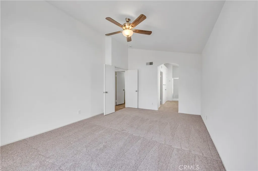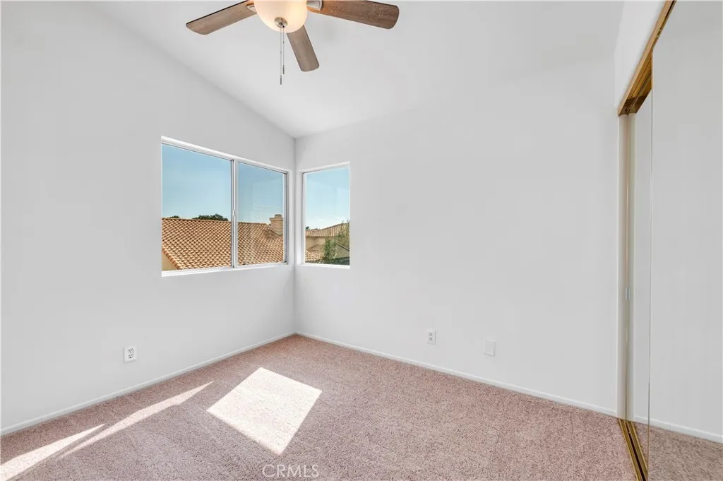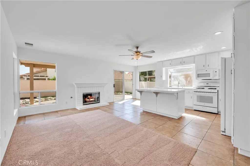 Lovely Muirfield model in Sun Lakes Country Club, a stunning 55+ community in Banning. This 3-bedroom, 2.5-bath home with loft and family room offers 1,846 sq. ft. of comfortable living. A double-door entry welcomes you into a bright, open floor plan with abundant natural light and freshly painted white walls. The spacious living and dining areas flow nicely for entertaining. The kitchen features ceramic tile flooring, updated painted cabinets, and appliances including the refrigerator. The downstairs primary suite is open and airy with a sliding door to the patio and an en-suite bathroom featuring dual sinks. Upstairs has been fully refreshed with all new carpet, paint, and ceiling fans in each room, along with two bedrooms, a full bath, and a loft area. Other highlights include mirrored closet doors, ample garage storage with built-in cabinets and attic ladder, a solid Alumawood patio cover, fresh exterior paint, new landscaping, and new carpet throughout the home. Sun Lakes Country Club offers resort-style living with two golf courses, three clubhouses (one with a full-service restaurant and lounge), three swimming pools including an indoor pool, tennis and bocce ball courts, and countless clubs and social activities. The perfect blend of comfort and community.