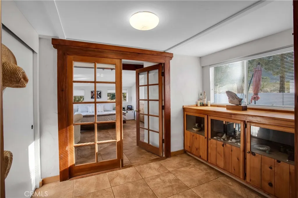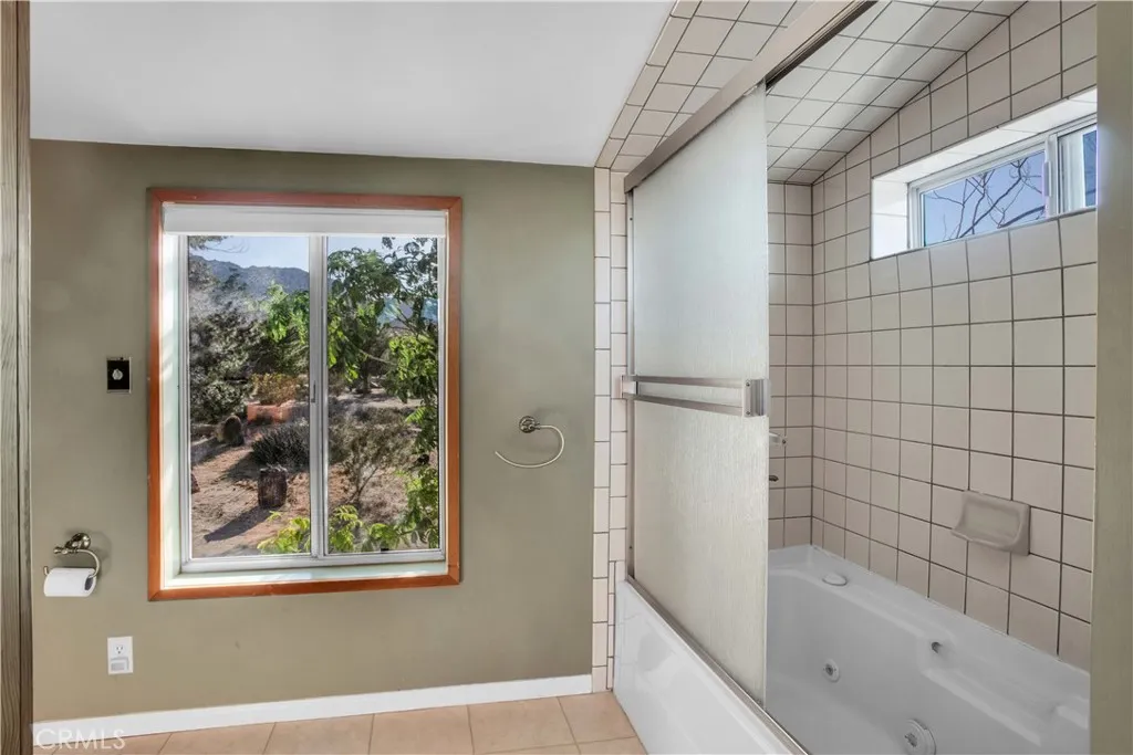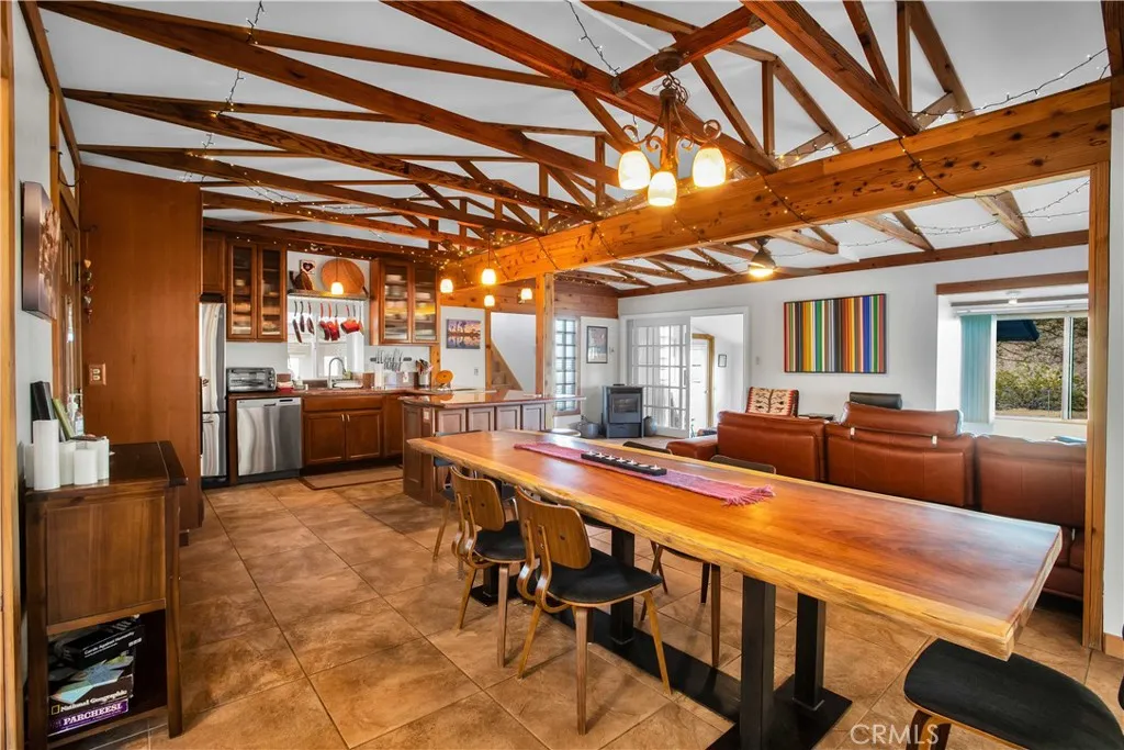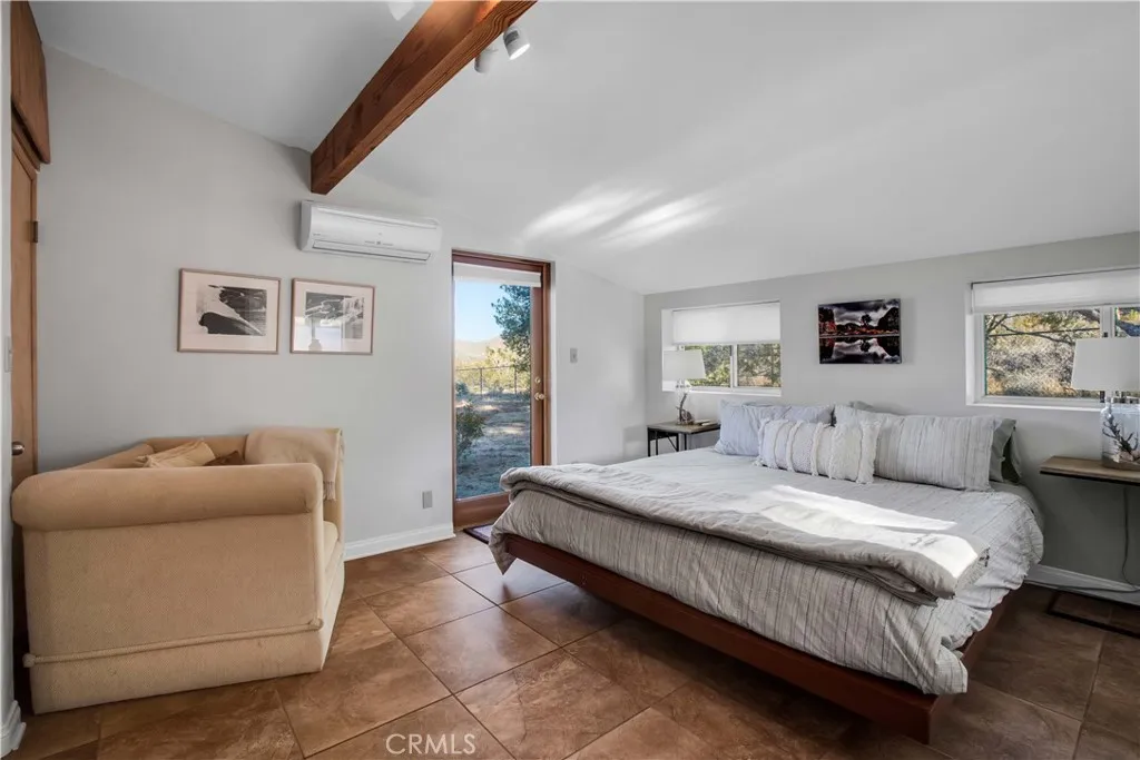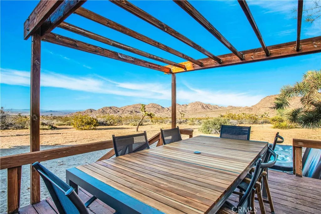 TWO JOSHUA TREE HIGHLANDS PROPERTIES TOTALING 10 ACRES! A nature lovers delight, featuring breathtaking views, this enchanting desert refuge is an easy hike to a 900+ acre desert preserve and a short drive to the Joshua Tree National Park entrance. The main house, a remarkable 2-bedroom, 2-bath entertainers dream with a welcoming guest quarters, is situated on 5 acres, while the adjacent 5 acres is vacant and ready for buyers to unleash their architectural vision. Comfort and style intersect in the primary home, which boasts a vast, open concept living space. The modern chefs kitchen with sparkling granite countertops and stainless-steel appliances opens into an expansive dining and entertaining area. The beautifully exposed wood beams and trusses lend a warm, inviting ambience. A versatile yoga room or office provides additional flex space for relaxation or accommodating overnight guests, who can also enjoy the privacy of the adjacent guest house--a spacious studio bedroom with a bathroom which offers the perfect retreat for friends or family. Year-round comfort and customized climate control is assured with 3 zoned mini-split HVAC, a large Mastercool evaporative cooler and cozy pellet stove. The 10 KW paid ground-mounted solar array ensures energy needs are effortlessly met, with electric bills virtually nonexistent. Outside, the allure continues with metal tile roofing, towering pines and Joshua Trees, and a sprawling view deck, ideal for alfresco dining or entertaining against the backdrop of wondrous vistas. Enjoy tranquility in the newer spa while stargazing and liste