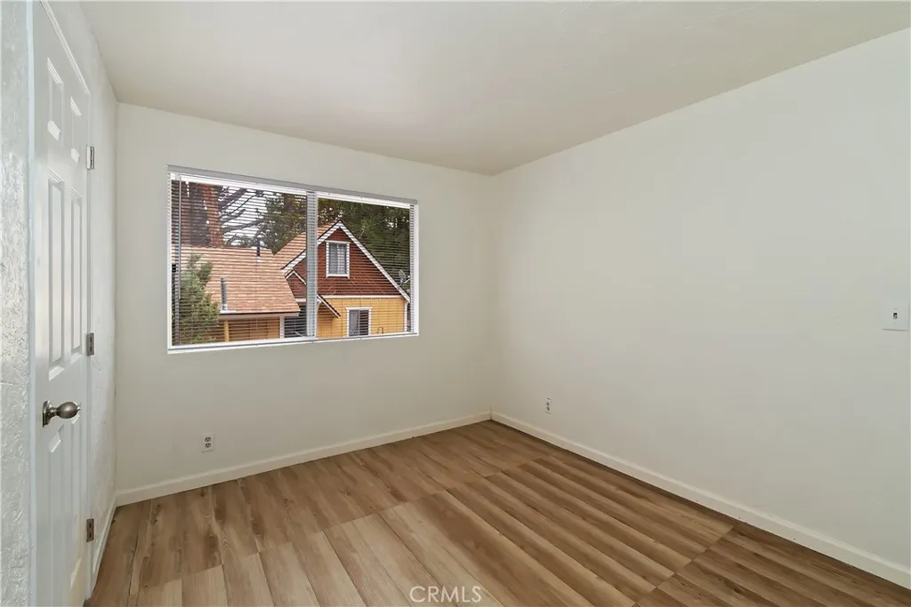 Tucked away on the quiet side of town, this cozy Big Bear home is just 10 minutes from shopping, schools, dining, and all the outdoor activities the valley has to offer ~ Its the perfect spot for anyone looking to enjoy mountain living without giving up convenience ~ The home has had some nice updates throughout, making it move-in ready while still leaving room for you to add your personal touch. Seller has walled off the living room and is currently using it as a second bedroom, without a closet, buyers option to keep it that way; or buyer may remove the interior non-structural wall and turn it back into a living room ~ Level parking means easy access year-round, no steep driveways to worry about in the winter ~ Youll love relaxing on the back deck with your morning coffee while listening to the wind in the pine trees ~ Close Proximity to the National Forest, just across the street for evening strolls as the sun sets ~ Underneath the house youll find a workbench and extra storage space, perfect for keeping tools, bikes, or seasonal gear organized. The yard is easy to maintain, giving you more time to enjoy the mountains instead of working on upkeep ~ Whether youre ready to buy your first home or looking for a place to settle into full-time, this property offers comfort, convenience, and the chance to make Big Bear your everyday escape.