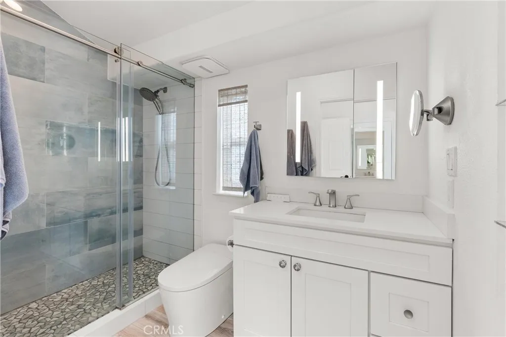 Fully remodeled coastal home in Newport Beachs coveted Lido Peninsula Resortthis 2-bedroom, 2-bath property with a versatile loft/office space offers luxury beach living just steps from the bay. The open-concept layout features a designer kitchen with quartz countertops, Zellige tile backsplash, Fisher & Paykel French door refrigerator, new oven, and a custom pantry with pull-out coffee station. The primary suite includes dual mirrored closets, updated flooring, and a spa-style bath with bidet toilet, Robern lighted medicine cabinet, and sleek modern finishes. The downstairs en suite bedroom features a new sliding glass door with built-in louvers, acoustic pocket door, and a custom Closet Solutions system with integrated floor hatch access. Both bathrooms are fully renovated with Ann Sacks stone, Jacuzzi soaking tub, Toto Washlet toilets, and designer vanities. Additional upgrades include mini-split A/C and heating (installed 2021 and recently serviced), expanded oak stair treads with cable railing, full PEX repipe, new gutters, and an extended front porch with outdoor cable railing. Enjoy resort-style amenities and the best of coastal living in one of Newport Beachs most desirable waterfront communities. Highlights are a private beach, a refreshing pool and hot tub heated year round, a clubhouse for social gatherings, and a state-of-the-art gym. Beyond the confines of this resort-like community, the wonders of Newport Beach await. A short distance away, discover the pristine sands of the beach and indulge in retail therapy at Lido Marina Village. Indulge in world-class din