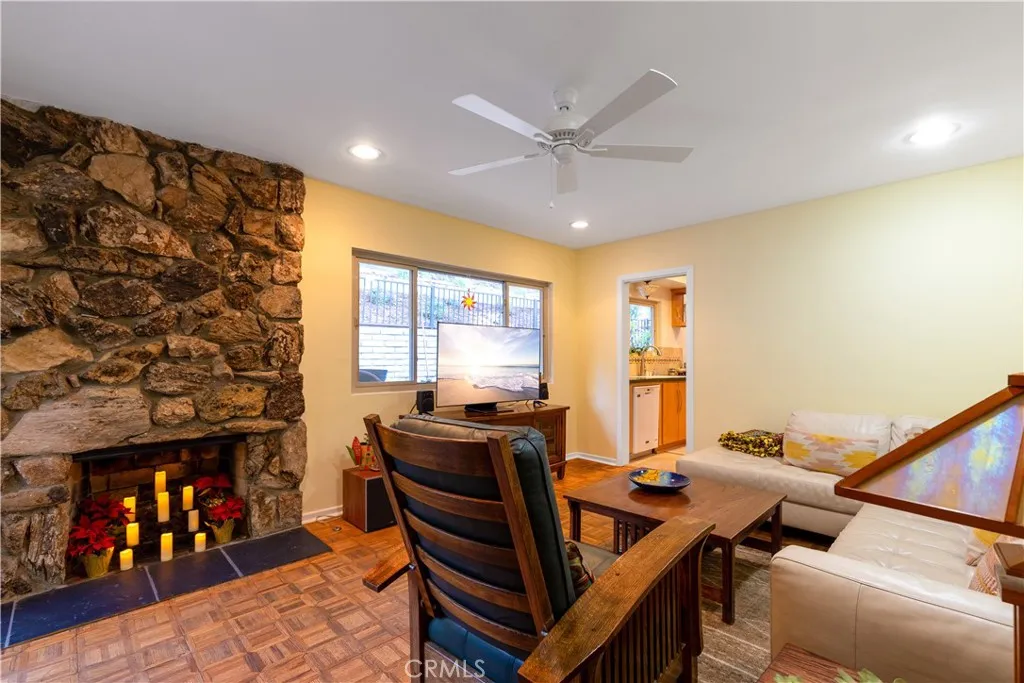 Hillside Luxury Nestled in the Hills of Glenoaks Canyon. Property is Ready to Move Into! Double Door Entry, Pergo Wood Flooring at Entry and Main Hallway. Large Step-Down Living Room with Recessed Lighting, Picture Windows with Peek-A-Boo Views and Formal Dining Area. Family Room with Parquet Flooring, Flagstone Fireplace and Ceiling Fan. Fresh Paint in Living Room, Family Room, Master Bedroom and Hallway. Pergo Wood Flooring in Hallway, Master Bedroom with Ceiling Fan and Sliding Dual Glazed Door Leading to Private Brick Patio Area. Master Bath with Single Sink, Large Faux Marble Finished Glass Sided Shower Stall with Glass Door. 2 Bedrooms Feature Carpeting and Ceiling Fans. Six Panel Interior Doors Throughout. Guest Bath off Hallway has Twin Sinks, Shower over Tub and A Lot of Cabinet Space. All Electric Kitchen has Marble Tile Counter Tops with Tiled Back Splash, Built-In Double Oven, Range Top, Dishwasher, Microwave Oven. A Lot of Kitchen Cabinet Space including Pantry, Laundry Closet with Gas Dryer hookup and Glass Cabinet Doors Over Range-Top. Kitchen Offers Access to Family Room, Formal Step-Down Dining Area and Stairwell to Interior of Double Attached Garage. New Drywall and Paint in Garage. Two Separate Patio Areas Offer Privacy and Entertainment. Brick Patio With Breeze Block Wall and Low Cavaliered Retaining Wall Off Master Bedroom. Cement Slab Patio Off Family Room with Cavaliered Planter Retaining Walls and Foliage. Third Patio Area has Brick and Concrete Walkway and Stone Brick Retaining Wall. Wrought Iron Fencing separate Patio Areas. Double Pane Windows Thr