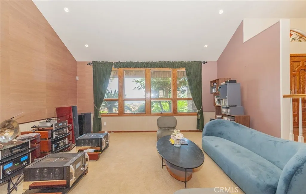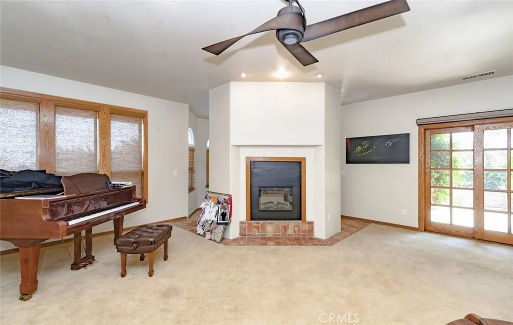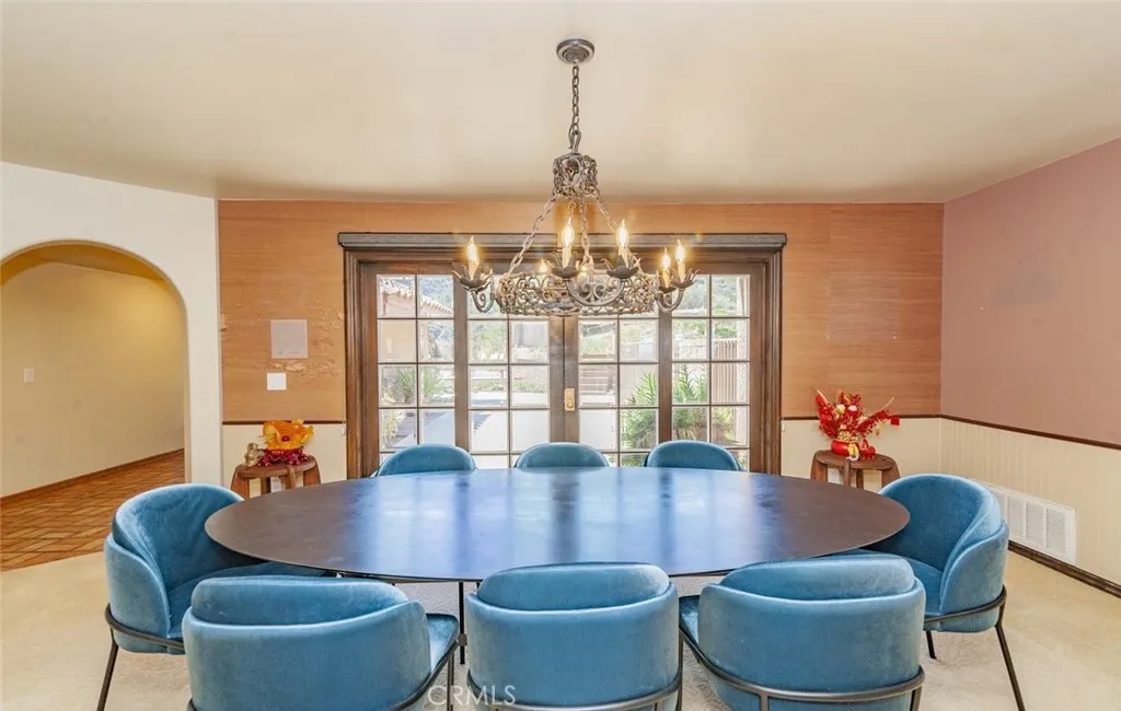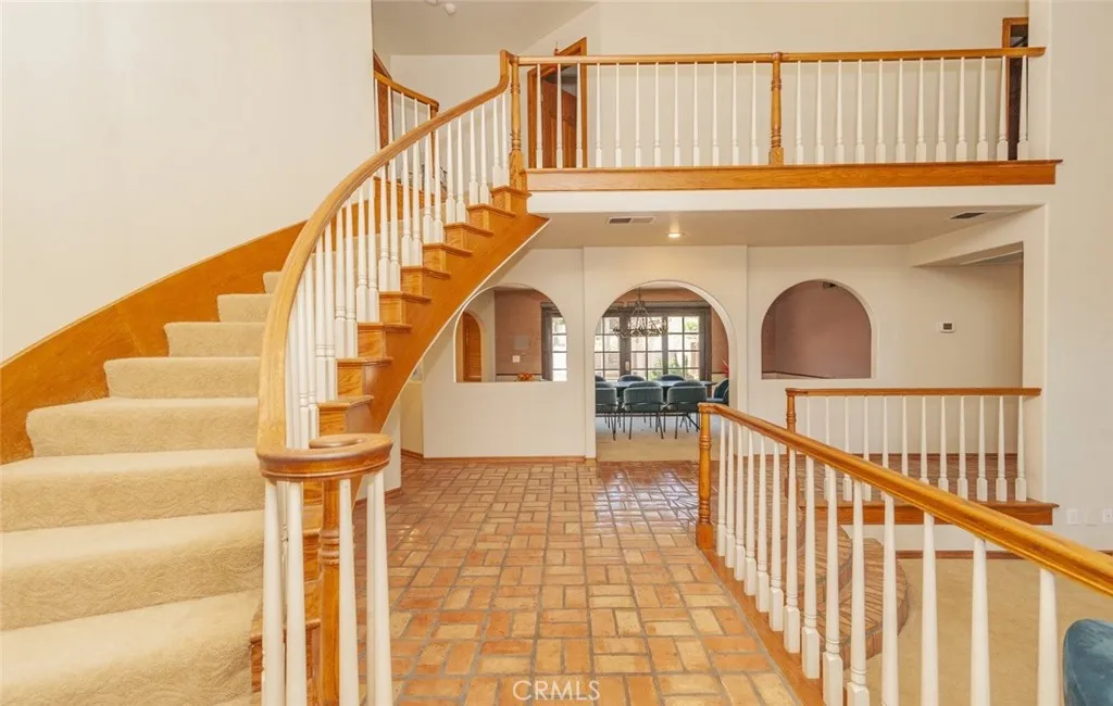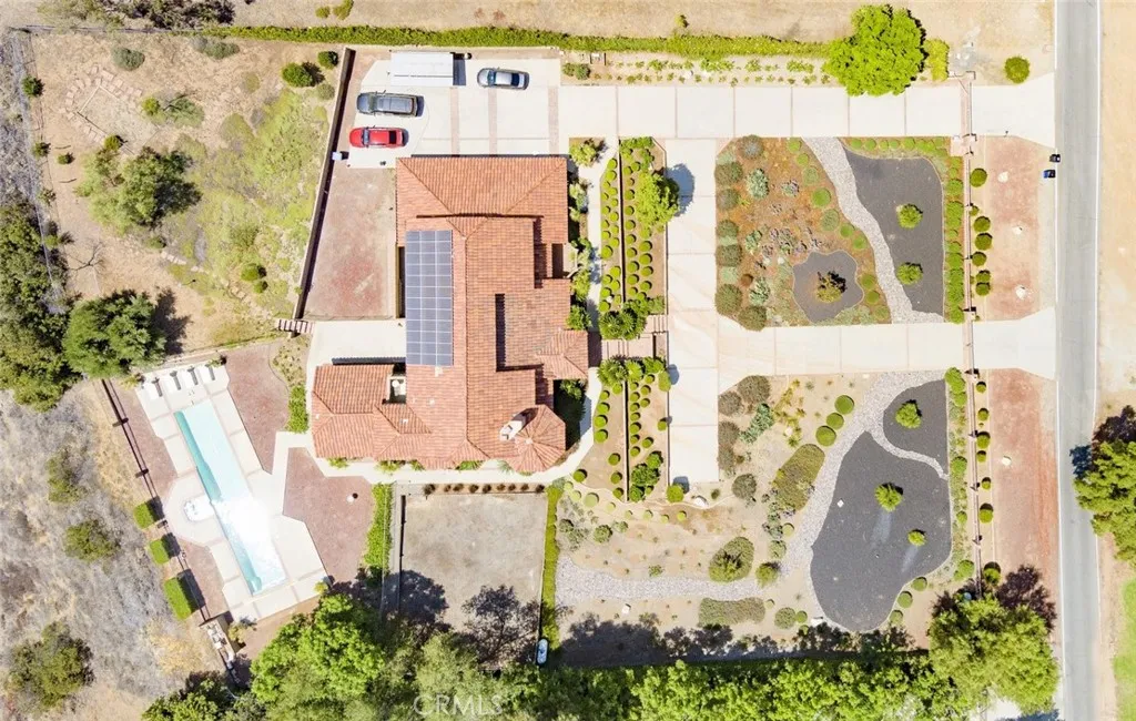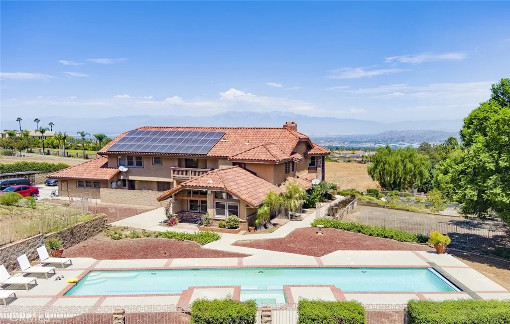 Welcome home to this 5-acre estate located on the exclusive hillside of South Corona adjacent to the expansive beauty of the Cleveland National Forest. This 5,000 sft Spanish influenced home is has a sweeping views of natural hills and city lights. Terracotta brick flooring to the hardwood French sliding doors and vaulted pinewood ceilings. Double door entry into the spacious foyer, with stark white arched doorways and contrasting hardwood trim. This home is ideal for entertaining both sizable events and intimate family gatherings. The family room has a dual fireplace that is shared with a cozy sitting room with views of the city below. The kitchen flows into the game room with walk-behind wet bar and vaulted paneled ceilings. The lower level features an ensuite, walk-in closet and quaint private brick patio where you can sip morning coffee and enjoy the gorgeous view. The grand staircase ascends to the upper level with 4 additional bedrooms and 3 bathrooms, which include an ensuite and the primary suite. The primary retreat is a private haven featuring a fireplace and sitting area. The spa-like bathroom has a marble soaking tub, walk-in shower and expansive walk-in closet with custom built-ins. If tranquility is what you desire the adjacent meditation room is an ideal retreat to escape into a good book or a quiet conversation. Outside there is a pool and spa with the deck overlooking the incredible South Corona landscape and incredible sunsets. Enjoy the convenience of a 4-car garage and RV parking. There is even an existing level area for a future sport court or additiona