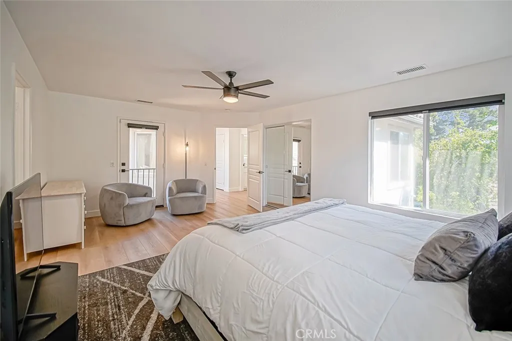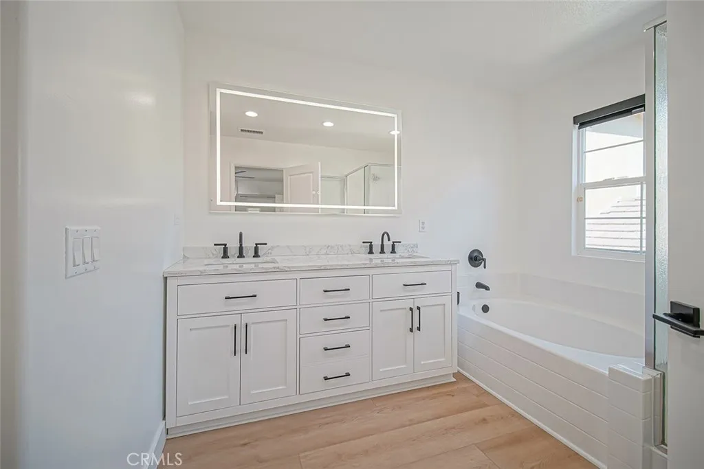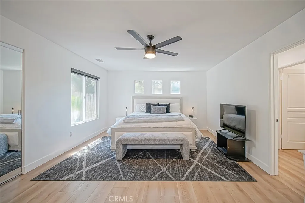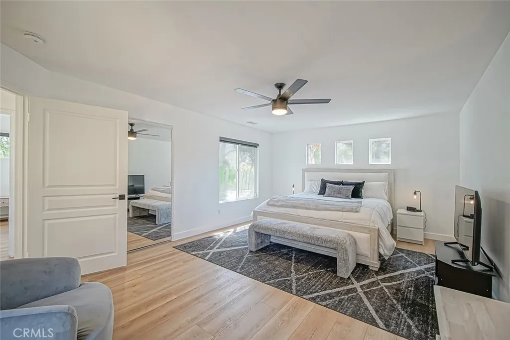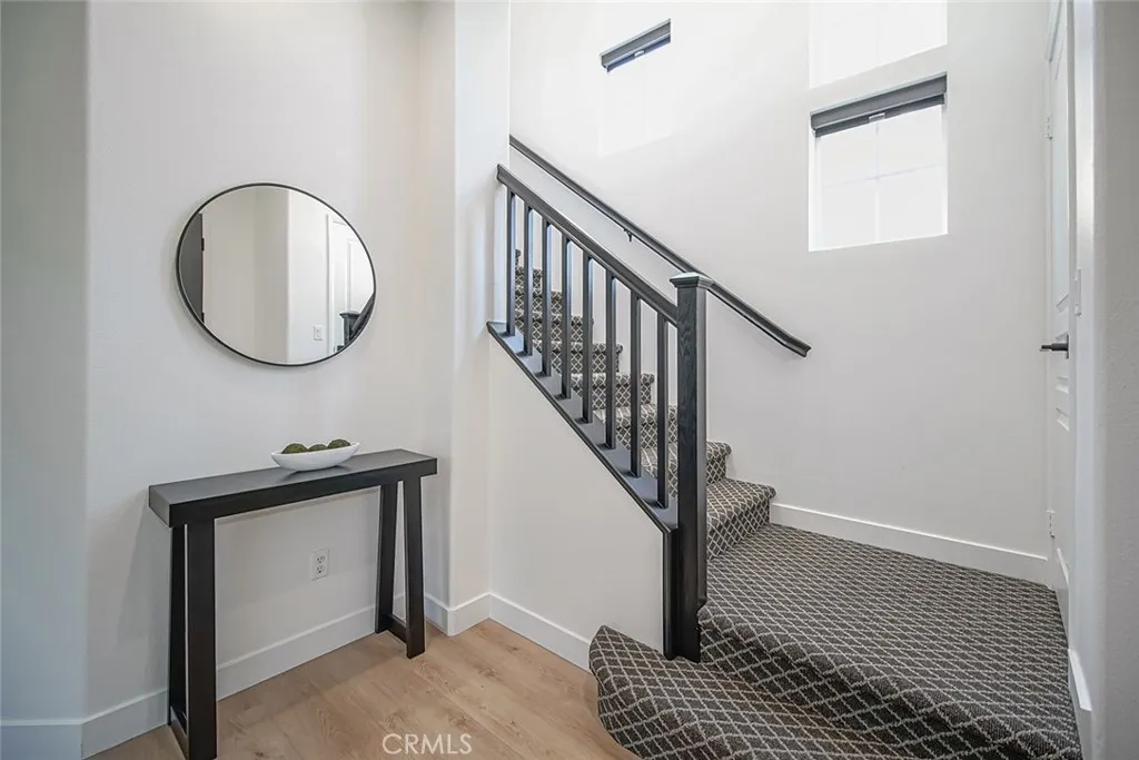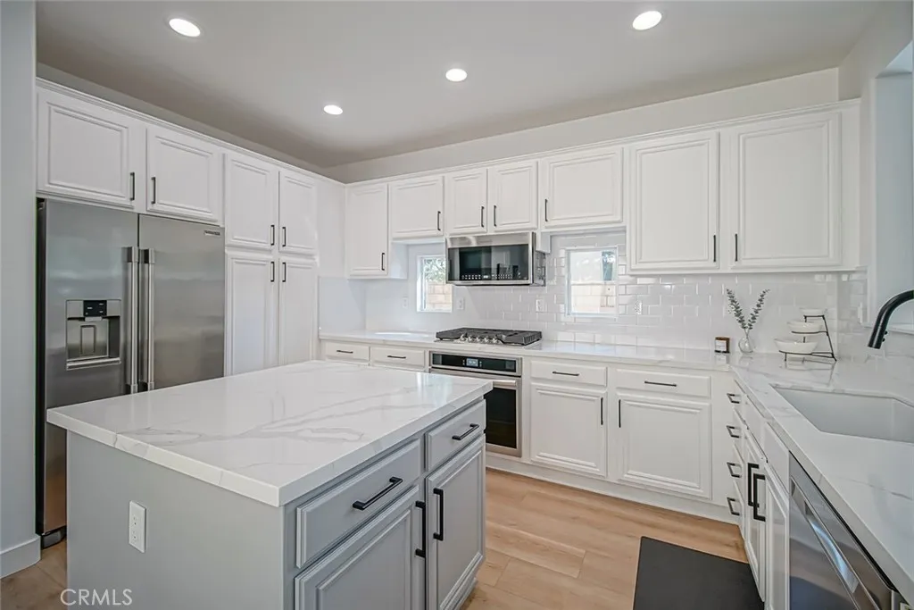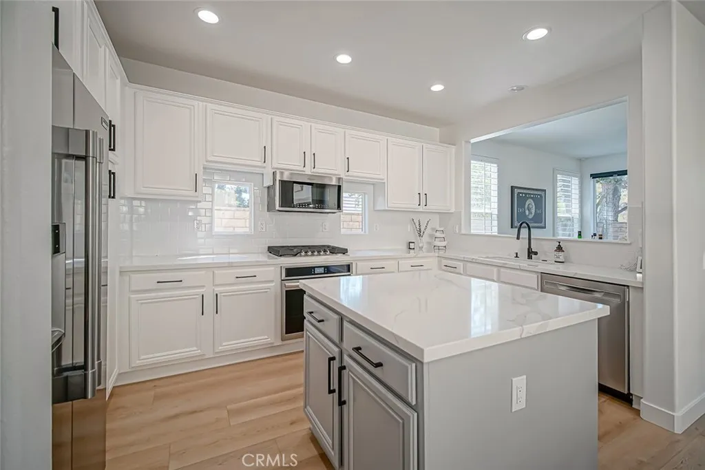 Exquisite Former Model Home in Guard-Gated Long Canyon at Wood Ranch. Welcome to luxury living in the exclusive Windmill neighborhood of Long Canyon, Simi Valley! This stunning former model home is ideally located at the end of a quiet cul-de-sac, offering breathtaking mountain views, exceptional curb appeal, and a long, private driveway. Step inside and be greeted by rich Country Breeze wide-plank flooring and designer black-and-white accents throughoutelegance and style in every detail. The beautifully updated kitchen is a chefs dream, featuring Quartz countertops, stainless steel Frigidaire appliances, a subway tile backsplash, and a center island perfect for entertaining or casual dining. The family room is a showstopper with its dramatic black custom built-ins, shiplap siding, and a sleek stacked-stone fireplacea space that effortlessly blends warmth and sophistication. A stylish powder room downstairs adds convenience for guests. Youll find four bedrooms, including one currently used as a home office with custom built-ins and plantation shutters. The primary suite is a serene retreat, complete with a spa-inspired en-suite bathroom featuring dual sinks, a separate shower, an oval soaking tub, and a stunning backlit mirror. Step outside to your private backyardperfect for entertaining or unwindingwith a hot tub and space to relax under the stars. Living in Long Canyon means enjoying resort-style amenities including four community pools and spas, a clubhouse, fitness center, and access to scenic Windmill Park and miles of beautiful hiking and biking trails. Youre also ju
