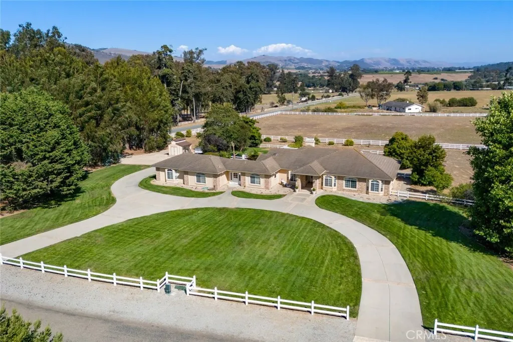 Sophisticated Living on Expansive Grounds. Set on five picturesque acres in the heart of Arroyo Grande, this custom Greg Nester estate blends timeless craftsmanship with modern luxury, creating a rare sanctuary on Californias Central Coast. With approximately 3,152 square feet of thoughtfully designed living space, the residence offers four bedrooms and three baths in a private setting where horses are welcome. Inside, the home is designed for both relaxed living and sophisticated entertaining. Two expansive living areas are enhanced by built-in cabinetry, a wet bar, and a four-unit entertainment center. The gourmet island kitchen features Bosch appliances, a Jenn-Air cooktop, a walk-in pantry, and ample cabinetry, while the adjoining dining room is perfectly suited for hosting. The master suite offers a spa-inspired retreat with a walk-in shower, complemented by ceiling fans throughout the great room and bedrooms for year-round comfort. A dedicated laundry/mud room with a shower adds both convenience and versatility. Technology and efficiency are integrated, featuring owned solar, Cat 5 wiring, surround sound, a whole-house fan, an intercom, and a full suite of security features, including cameras, motion lights, and a burglar alarm system. Golden State Water Company services the home, while a private well and 5,000-gallon storage tank support the landscaped grounds, complete with sprinklers and drip irrigation. Outdoor living is equally compelling, with a vinyl-fenced perimeter, gated dog run, storage shed, and fire ring for gatherings under the stars. A 4-car garage, plu