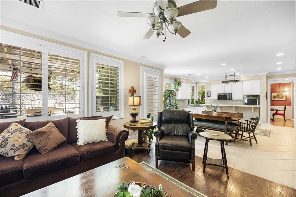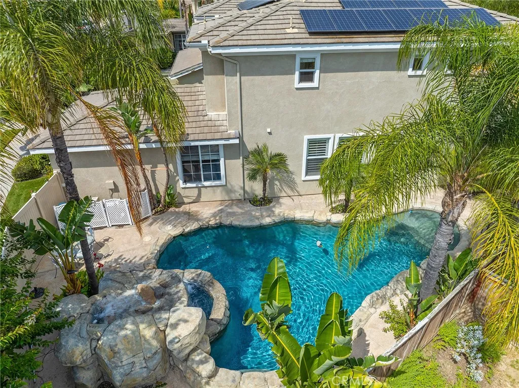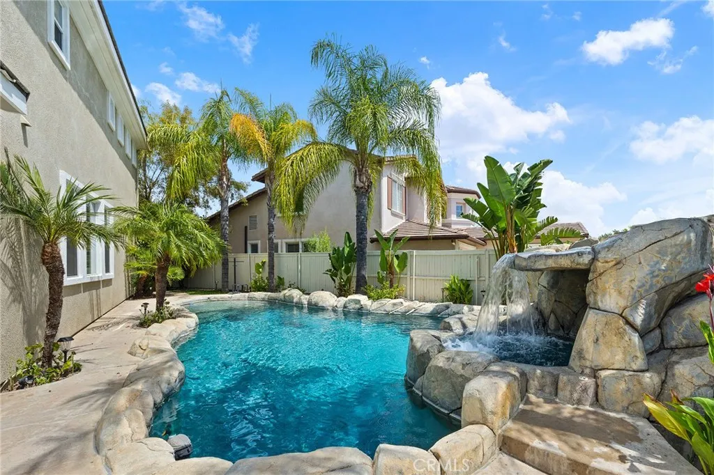The Sellers are providing up to a $15,000 credit to the buyer towards closing costs. Owned Solar. Nestled in the highly sought-after Copper Canyon, this stunning cul-de-sac pool home blends comfortable elegance with views of the Santa Rosa Plateautruly the best that Murrieta has to offer. Low Property taxes, No Hoa. The moment you arrive, you'll be captivated by the home's charming curb appeal. Step through the formal entryway, where soaring two-story ceilings showcase a grand staircase with a graceful wraparound banister. The expansive kitchen features a central island and a generous dining space, perfect for entertaining family and friends. Flowing seamlessly into the inviting family room, you'll find a cozy gas fireplace and a gorgeous built-in entertainment center. Complete with formal living and dining room featuring exquisite oversized crown molding and wainscoting. Downstairs, there is a full bedroom with an en-suite bathroom, a spacious laundry room, and a separate powder room for convenience. Upstairs, discover four additional bedrooms, a versatile loft with a large newly renovated and waterproofed deck, the office with beautiful built in cabinetry and two bathrooms. The luxurious primary suite features two walk-in closets and a spa-like bathroom with a soaking tub, upgraded walk-in shower, and dual vanities. Step outside to the beautifully appointed backyard, where you can enjoy panoramic mountain and canyon views from multiple seating areas, a built-in BBQ, fire pit, and direct access to scenic walking trails. The sparkling pool with a waterfall spa promises endl