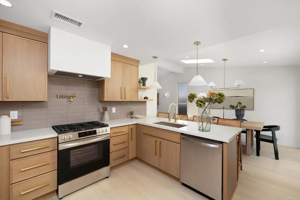 Step through the landscaped front yard into inviting, light-filled interiors where new wide-plank flooring, fresh paint, and designer lighting create a crisp, contemporary feel. The welcoming living room features a sleek fireplace with a wood mantle and custom paneliing, set the tone for cozy gatherings and relaxed evenings. The kitchen is a showpiece, boasting brand-new white oak cabinets, quartz countertops, elegant fixtures, and stainless steel appliances, with a breakfast bar ideal for slow weekend mornings and busy weeknights. A skylight above the dining area floods the space with natural light, enhancing the seamless flow to the landscaped backyard and private patio, perfect for entertaining or enjoying the coastal breeze. The luxurious primary suite offers a serene escape with a completely remodeled ensuite bathroom featuring spa-inspired finishes. Additional bedrooms provide flexibility for guests, a home office, or playroom, while the remodeled hall bathroom adds both style and function. Designer lighting and curated upgrades elevate every corner of this home, nestled in a desirable Torrance neighborhood known for its peaceful streets, nearby parks, shopping, dining, and proximity to Redondo Beach. Opportunities like this are rare, schedule your showing today and experience the perfect balance of style and comfort.