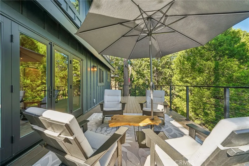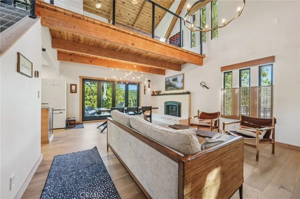 Stunning Fully Renovated Lake Arrowhead Home with Lake Rights & Unobstructed Views, including Blue Jay Bridge! This incredible home has been completely rebuilt down to the studs with over $400,000 in top-quality upgradesdesigned to be fire-wise, energy-efficient, and low-maintenance, while offering modern comfort and timeless mountain charm. Go inside to find an open floor plan with Bellawood white oak engineered wood flooring, a beautiful gas fireplace, and panoramic views from every angle. The chefs kitchen boasts marble counters, induction stove (gas hookup available), retro fridge, drawer microwave, and custom cabinetry. Bathrooms are elegantly designed with Delta split-control rain showers, sleek fixtures, and thoughtful details. No expense was spared in making this a turnkey, worry-free mountain retreat. Upgrades include: Solid-core knotty alder doors and trim, Nu-Ray 24-gauge metal roof with 8" foam insulation & skylight (50-year rated), Hardi board & batten siding, pre-painted for long-term durability, Milgard C650 fiberglass windows & patio doors, Timbertech Class A fire-rated decks with View Rail railings, PEX plumbing with Moen Flo smart water shutoff, 220 amp panel with updated electrical & lighting, HVAC with multi-zone Ecobee controls, Navien hydronic furnace & GE Connect AC, Whole home generator for peace of mind. The exterior is equally impressive with new retaining walls, French drains, plus the spacious deck perfect for enjoying the fresh mountain air and sweeping views. Located just minutes from Lake Arrowhead Village, Blue Jay, and the lake itself, make