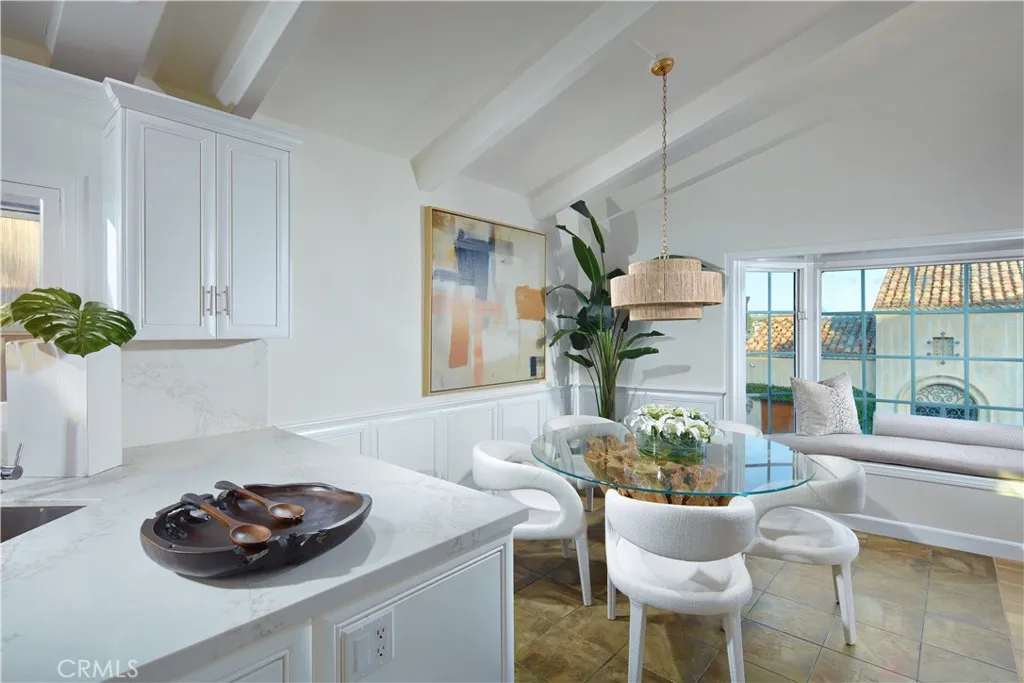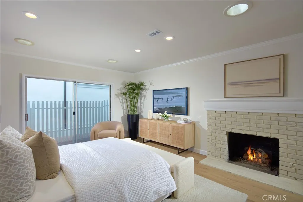 Set on a coveted 40-foot wide lot along Corona del Mars prized 200 block, this single-level residence embodies the charm and sophistication of village living. Offering approximately 2,468 square feet with 3 bedrooms, 2 bathrooms, and the rare convenience of a two-car garage below, it enjoys a location just moments from Little Corona beach, boutique shops, and local dining. A Dutch door entry reveals light-filled interiors where vaulted, beamed ceilings, crown molding, and a welcoming fireplace framed by custom built-ins create warmth and character. French doors open the living room to a balcony with treetop vistas and ocean breezes, while the kitchenappointed with Calacatta Prado countertops and crisp cabinetryflows easily into the dining area and outward to a private front patio. All three bedrooms are located on the main level, with the primary suite offering vaulted ceilings, generous storage, and a redesigned bath that blends elegance with ease. Fresh paint, new flooring, and remodeled baths further refine the home, striking a balance between timeless charm and modern updates. Wide frontage, classic details, and a sought-after setting in the heart of Corona del Mar make this residence a rare offering where coastal lifestyle and enduring style meet.