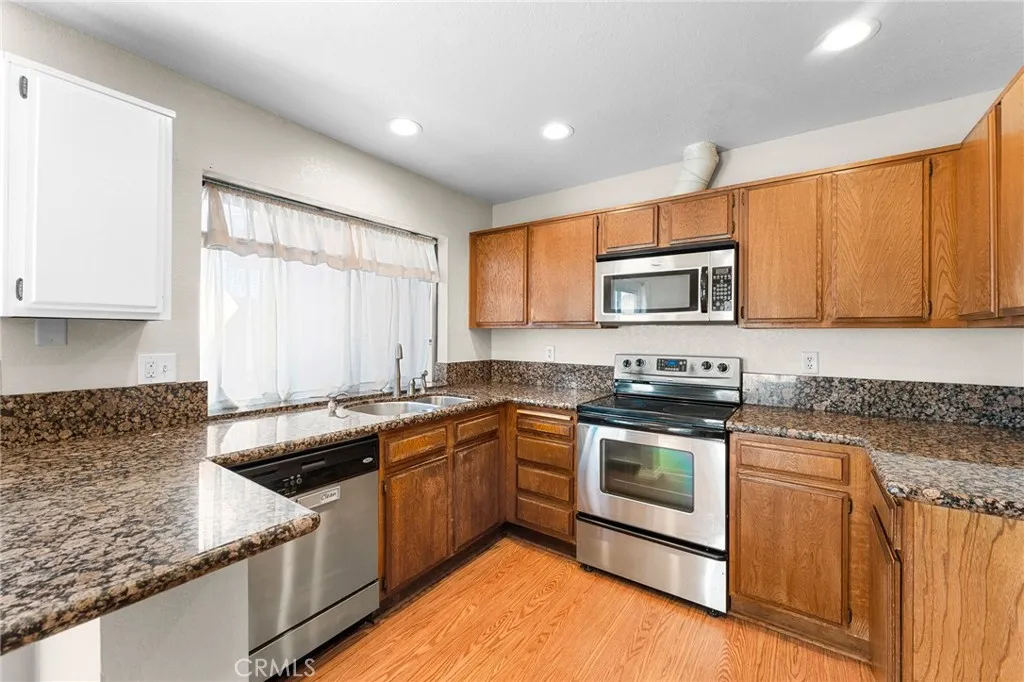Price Improvement!! Move in before the holidays and reap the rewards of automatic built-in equity! A perfect 3-bedroom, 2-bath family home located within walking distance to all community amenities! In the kitchen you will find granite countertops, stainless steel appliances, recessed lighting, and a spacious layout. There are three sliding doors that lead to the backyard providing both convenience and functionality. In the living room there is a fireplace and a built-in cabinet perfect for storage. The large lot is fully fenced with block walls, includes two storage sheds, and offers a covered wood patio with a fan and has a stained concrete slab perfect for entertaining! The highlight's of the property is the PAID-OFF SOLAR , a whole house fan, and the Newly Upgraded PEX PIPE plumbing throughout, providing efficiency and peace of mind. The home offers an excellent opportunity to add your own updates and personal touch! This property is part of a private, 24/7 gated community, and offers a 524-acre lake for boating, water skiing, sailing, and fishing. Additional HOA amenities include pools, clubhouse, tennis, pickleball, equestrian center, SCGA-rated golf course, four beaches, nine parks, amphitheater, and more than 40 community clubs. You will love holidays in this community with year round parades for all occasions! Enjoy the benefits of LOW TAX RATE and NO MELLO ROOS! Perfect home for first time buyer's! Don't wait to see this one!