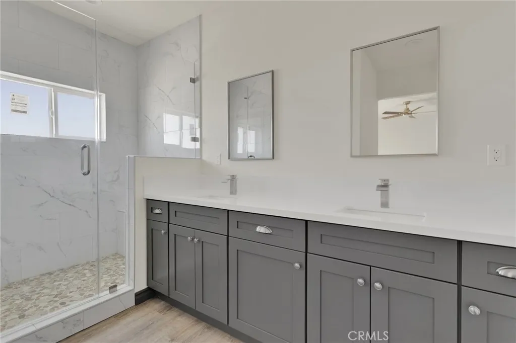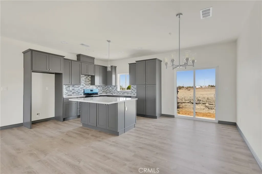 Welcome to your modern desert retreat in Pinon Hills. This brand-new, energy-efficient 4-bedroom, 3-bath home offers 2,100 sq. ft. of contemporary living on a fully fenced 1.87-acre parcel with flat, usable land. Located on Rosado Roadless than 300 feet from paved Duncan Roadthis home combines peaceful rural living with easy access to Highway 138, Snowline School District, local shopping, and Wrightwood mountain recreation. Inside, the open-concept layout showcases a clean, modern palette with contrasting dark trim, luxury vinyl plank flooring, and plush bedroom carpeting. The chefs kitchen features gray cabinetry, soft-close drawers, custom quartz counters, and coordinated finishes carried through the bathrooms, hallway, and laundry room. The primary suite includes a spa-inspired bathroom with a custom tile shower and a walk-in closet with built-in shelving and a dedicated shoe rack. Energy-efficient upgrades include dual-pane windows and sliders, a 5-ton HVAC system, solar panels, full Title 24 compliance, and radiant barrier roof insulation. An oversized 3-car garage with extra depth provides room for trucks, toys, or a workshop. The expansive lot offers plenty of space for RV parking, horses, or future additions. Additional features include a covered front porch, barn-style interior doors, and modern designer finishes throughout. This is new-construction acreage living at its bestprivacy, views, and convenience all in one of the High Deserts most desirable areas.