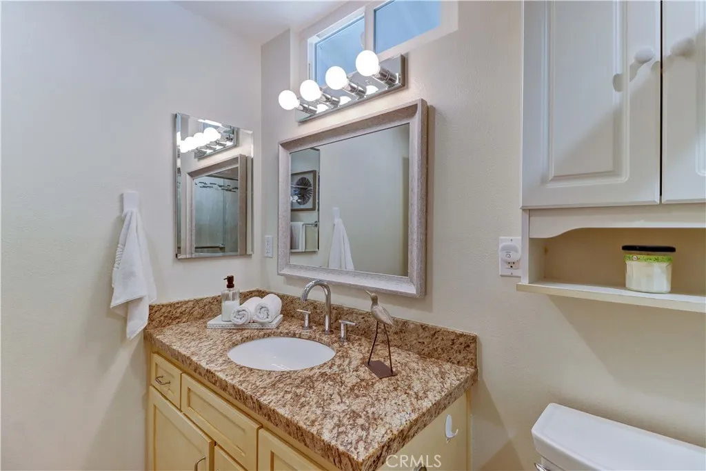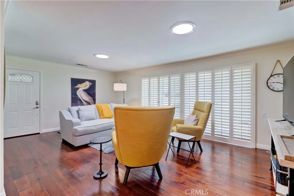 Beautifully remodeled move-in ready Casa Vista Condo (2bd/2ba) with no stairs. As you enter the home, you will notice the spacious living room with solar tubes and access to the patio. The windows and sliding glass doors have been upgraded throughout the home and have wooden shutters for privacy. The kitchen has been remodeled with stainless steel appliances, new cabinets, granite countertops, and recessed lighting. Additional cabinets were built in the dining room providing more storage. The primary suite is generously sized for a king size bed and includes an en-suite bathroom and awalk-in-closet.Both bathrooms have been remodeled with new cabinets, mirrors and a new shower in the master bathroom. Other great features include central air/heating, a stackable washer/dryer, smooth ceilings, no stairs and parking close by. As an option, purchase the home furnished - perfect for your winter or summer home. The home was remodeled in 2015. Located in Laguna Woods, enjoy all the amenities the Village has to offer: 27 holes of golf plus a separate 9-hole walking course, tennis courts, separate pickleball courts, 5 swimming pools, 3 fitness centers, bridge card room, 7 club houses, computer rooms, over 200 clubs to participate in and much more. There is free bus transportation. The unit includes: water, trash, basic cable, landscaping, and exterior building maintenance plus access to all Laguna Woods Village Facilities. You are within 15 minutes of Laguna Beach and extremely close to great shopping and restaurants. Come and see this beautiful home.