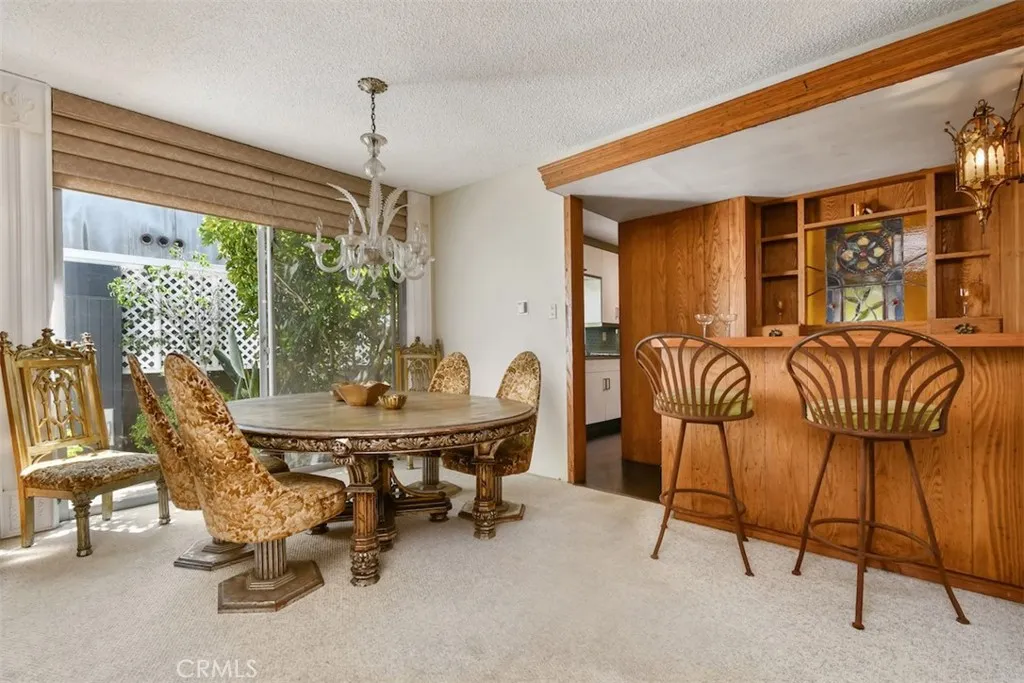 Located in the heart of West Hollywood, just blocks from Cedars-Sinai and a short drive to Beverly Hills, Melrose, and LAs best shopping and dining, this unique mid-century home offers both practical living and endless possibilities. Towering shade trees, charming sidewalks, and mature landscaping define this highly sought-after neighborhood near Rodeo Drive, The Grove, and LACMA. Lovingly maintained by the same owners since 1960, the home is an architectural showpiece filled with character. The living room features handcrafted moldings, detailed woodwork, and a striking walnut wall unit framing the fireplace. The dining area glass doors open to a landscaped side yard, while the adjacent bar crafted from rare Wormy Chestnut and illuminated by stained glass adds vintage charm. Nearby the updated kitchen blends modern style with mid-century flair, showcasing glass tile, new cabinetry, and stainless appliances. A bright breakfast nook, highlighted by a period light fixture and large window, brings in abundant natural light. Three spacious bedrooms offer unique details; the large front bedroom has three closets and built-in shelving, the middle is ideal for an office or bedroom, and the rear bedroom offers versatile possibilities. The backyard is a private retreat, with multiple seating areas, a fire pit and spa. The bonus room offers versatile space as a studio, with ample closets and shelving ideal for creative projects or additional storage. Mature fruit trees, including orange, white peach, and lemon, complete the serene setting. Additional features include a carport with s