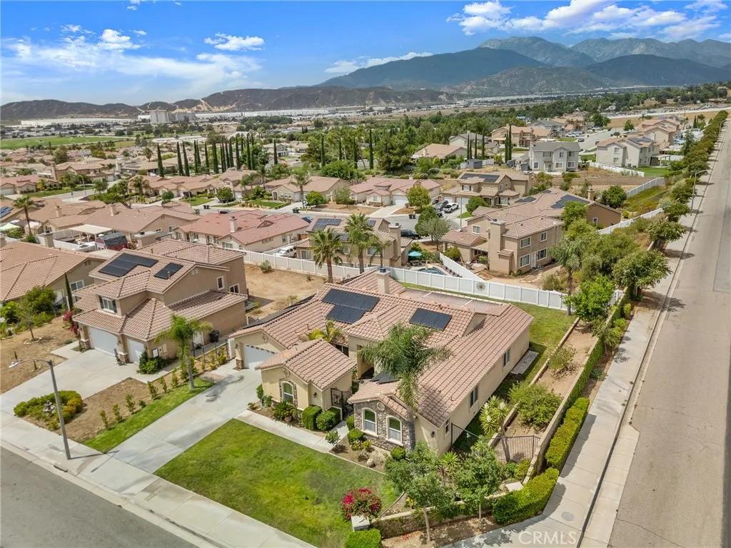 This is a must see home amazing floor plan and great location with a new price! Discover the elegance of prestigious Verdemont Estates with this beautiful single-story, pool home on a corner lot that offers an exceptional blend of comfort and style. Featuring 5 bedrooms and 4.5 bathrooms, this residence is designed for modern living. The expansive kitchen, complete with a cozy breakfast nook, flows seamlessly into a separate formal dining roomperfect for entertaining. The kitchen opens up the large family room with a fireplace and there is a separate formal living room. Also, a powder room is next to the indoor laundry room which includes cabinets and a sink! There are many custom design features that you will notice once inside! Including a workstation area in the hallway! A perfect floor-plan! Retreat to the primary suite, where you'll find a spacious bathroom and a generous walk-in closet. On the opposite side of the home, three additional bedrooms await, including one with an en-suite bath and a convenient Jack and Jill bath for shared use. Enhancing its versatility, a private casita (the 5th bedroom and 4th bathroom)provides potential as an ADU, office, workout space, or game room. The home also boasts a lovely courtyard. The backyard is an oasis including and a refreshing pool and spa, covered patio with fans is ideal for outdoor enjoyment. Relax with a cup of coffee or enjoy the mountain views. Additional highlights include a solar lease for energy savings, this home is located near CSUSB few minutes to the freeway large garage with plenty of storage, freshly painted