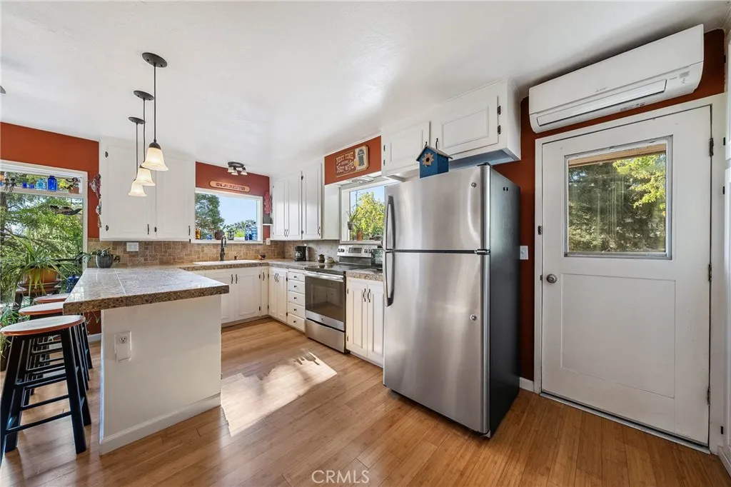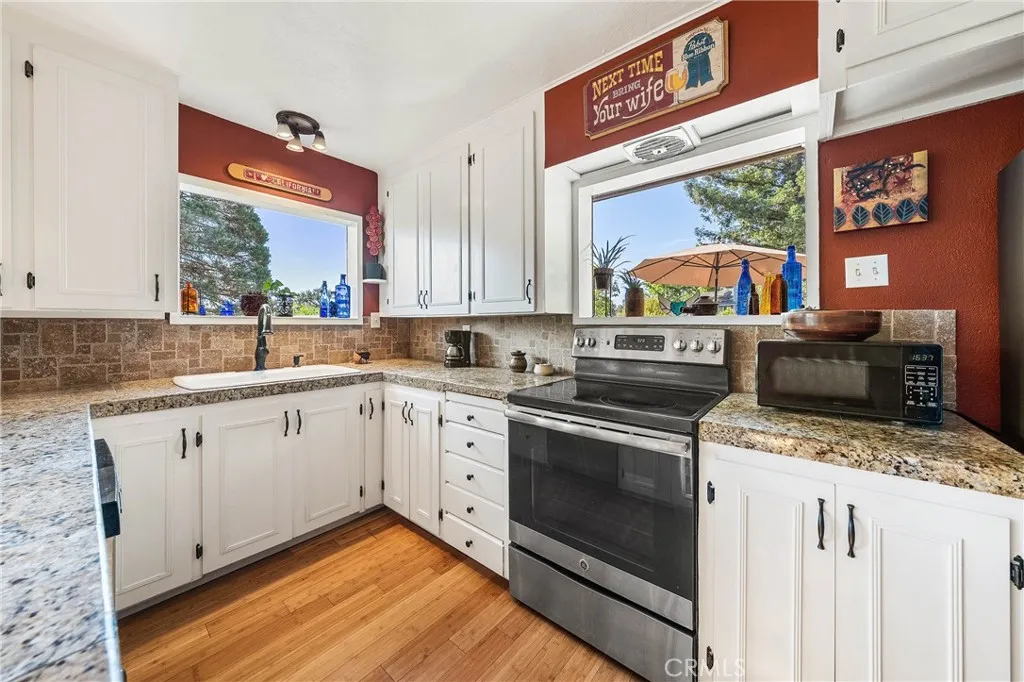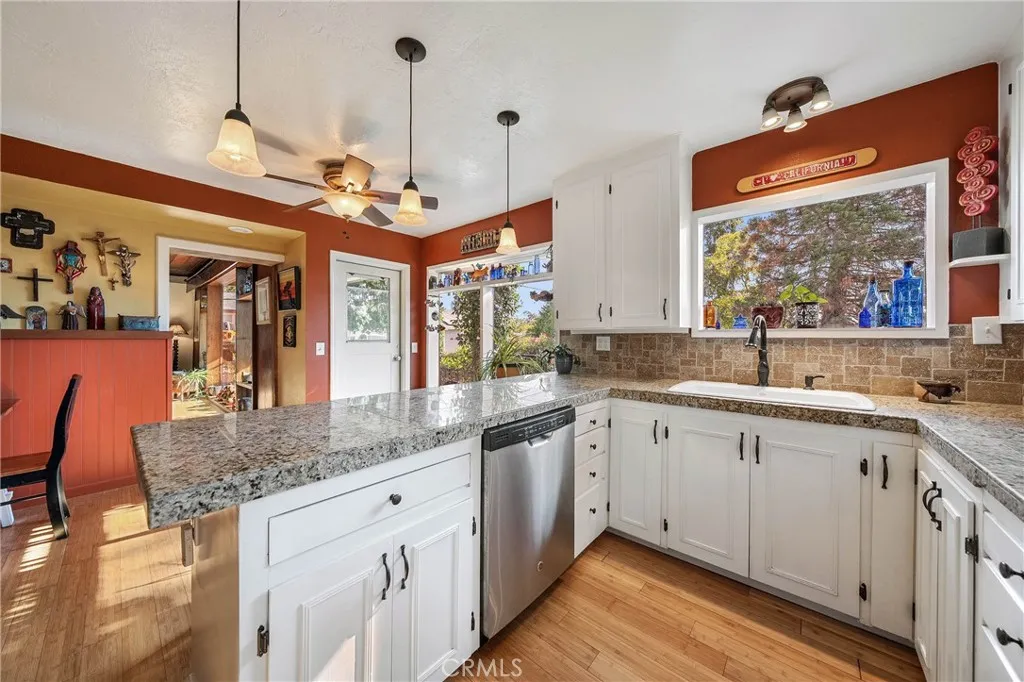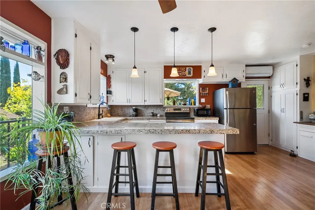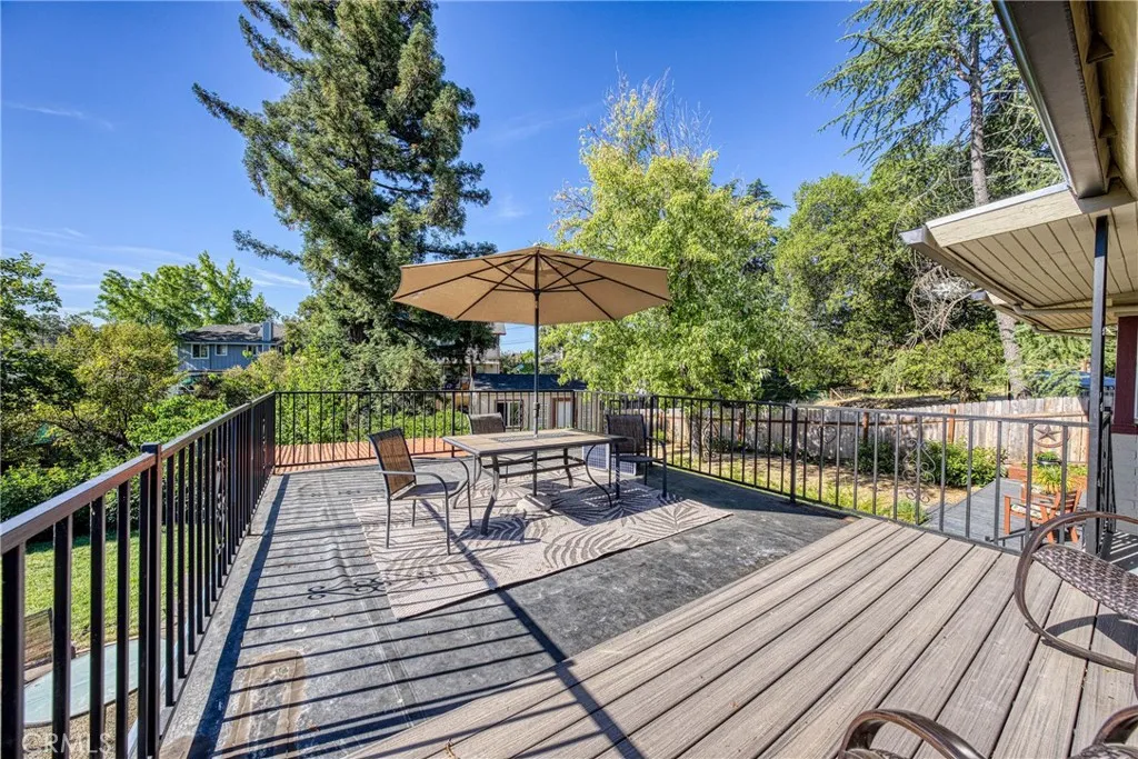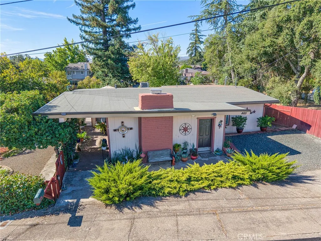 Beautifully landscaped, large, fenced yard in North Lakeport. Great neighborhood. 3-bedrooms, 3-bathrooms on 0.375 of an acre. NEWER ROOF- Roof replaced on home and shed is past 2 years! Main house is a spacious 2-bedroom, 2-bathrooms. Additional 1-bedroom 1-bathroom ADU also. Main house features bamboo flooring throughout. Mini split for heat and air. Living room has a wood stove, ceiling fan, large windows for natural lighting, and built in bookshelves/shelves. Kitchen features granite counter tops, wrap around counters, electric glass cook-top stove, deep sink, dishwasher and ceiling fan. Full guest bathroom with tiled flooring, large vanity, walk-in shower, separate tub, updated window and glass shelves. Stackable washer and dryer in hallway. Nice size guest bedroom with carpet, ceiling fan and a large closet. Large primary bedroom with carpet, ceiling fan and walk-in closet. Primary bathroom features a walk-in shower, dual sink and tile flooring. Covered front porch, large deck in back and lower sitting deck. BONUS ADU separate entrance featuring 1 bedroom with tile flooring, ceiling fan and large closet. 1-bathroom with walk-in tiled shower and tile flooring. Kitchenette featuring a sink, refrigerator, microwave, and living room has a ceiling fan. (Option of furnishings in ADU). Great rental income potential or N-Law unit. The utilities to the ADU run off the main house. Large shed in the back yard with a deck and walk-ways. Green lawn in back yard, lots of plants, flowers, raised beds, and multiple drains. French drains around property, and sump pump system under hou
