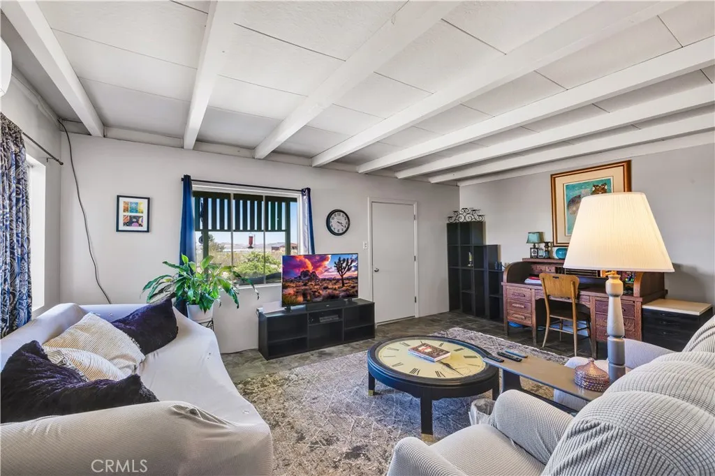 2 Homes on 5 Acres with Workshop & RV Hookups in Flamingo Heights A Rare Desert Compound! Located in the highly desirable Flamingo Heights area of Yucca Valley, this incredible 5-acre property spans an entire block and offers two detached single-family homes, 2 RV hookups, a detached workshop, and multiple access pointsmaking it the ultimate setup for multi-generational living, investment, or income potential. Each home has its own separate access from different roads, along with driveways connecting the two, offering both privacy and flexibility for shared or independent use. Main Home Approx. 2,139 Sqft | 3 Bed, 2 Bath As you enter the main home, you're welcomed by a formal living room with soaring vaulted, beamed ceilings, currently used as a game room. The heart of the home is a massive open-concept space that includes a spacious kitchen, dining area, and second living roomideal for entertaining and everyday living. The kitchen features abundant cabinetry and storage, while the rest of the home offers three oversized bedrooms with plenty of closet space. The guest bathroom is centrally located and well-appointed with all the essentials. The primary suite is especially large, featuring both a walk-in closet and a second full-size closet. The ensuite bathroom offers retro charm and is exceptionally well-maintained, with a large jetted tub and a walk-in shower. Workshop, RV Hookups & Storage At the center of the property sits a metal workshop with a concrete floor, ample lighting, and room for tools, projects, or off-road toys. There are also 2 full RV hookups, several s