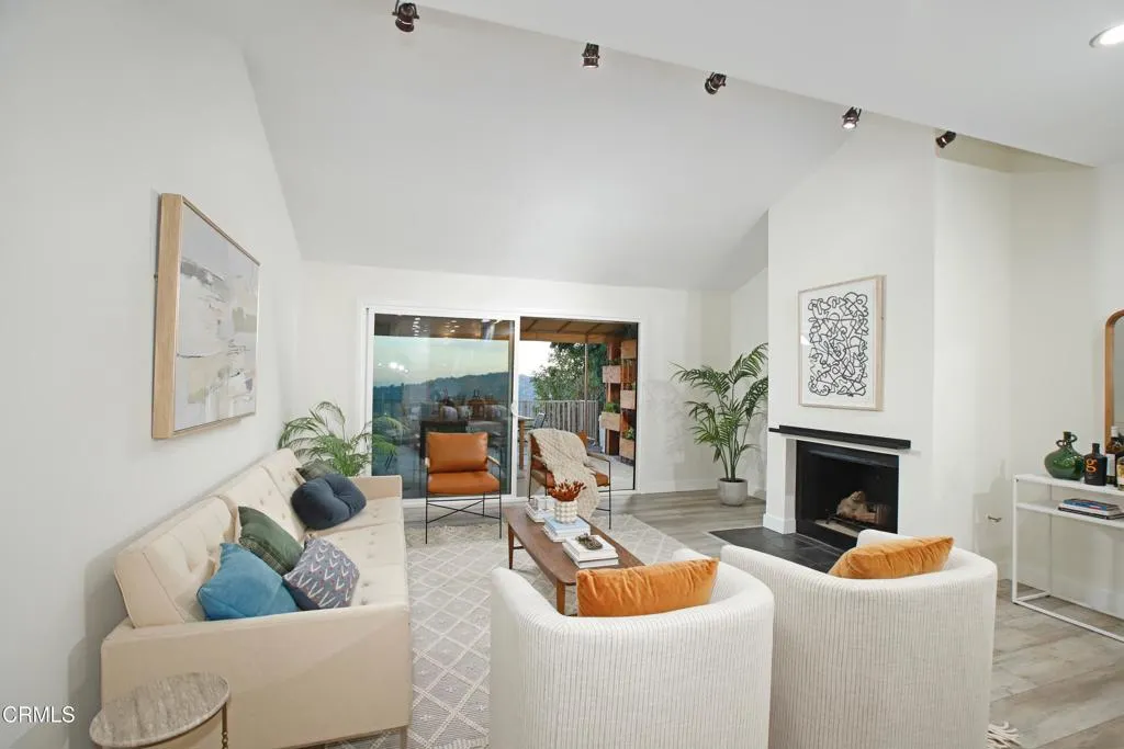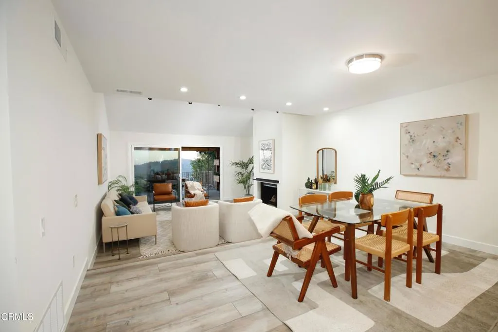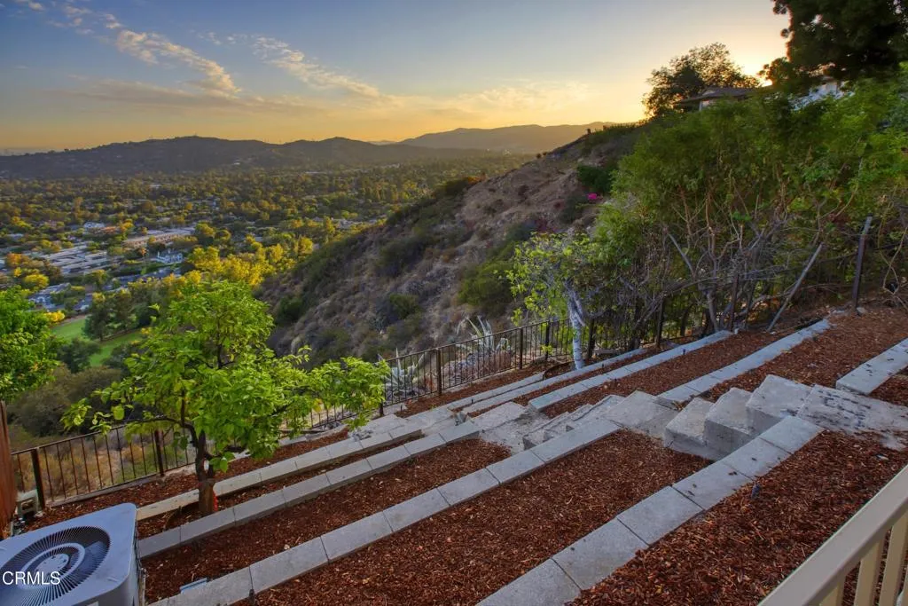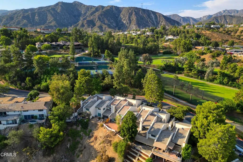Nestled high in the foothills surrounding the La Canada Country Club, this updated three bedroom, three bath townhome has stunning unobstructed views of Downtown LA. Set back from the street, the formal entryway steps down to the open concept kitchen and great room, which features vaulted ceilings and large glass sliding doors that provide a direct sightline to the panoramic views. The updated kitchen includes a breakfast bar, stainless steel appliances, granite countertops and a large pantry area. Off the main living space is a versatile third bedroom with three-quarter bath that makes a great guest suite, den or work from home space. Upstairs you'll find a spacious primary bedroom suite with a walk-in closet, dual sinks and a gigantic double shower. The large second bedroom has built in storage and its own full bath. Finishing off the interior is a laundry area with included washer and dryer and an oversized attached two car garage. Best of all, the townhome features two large separate outdoor spaces: a private enclosed patio off the kitchen, and a huge extended patio off the great room. The covered back patio provides an extension of the indoor living space and is the perfect place to entertain while enjoying the gorgeous mountain and city views. Located in one of LA's most coveted and distinguished school districts, this townhome is ready and waiting for you. Welcome home to the peace and serenity of the foothills!