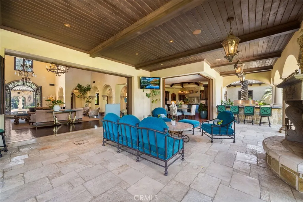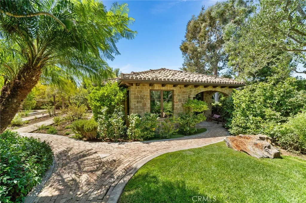 Hidden behind a stone faade and private gates, this one-of-a-kind Italian Villa fuses the romance of Old World craftsmanship with the sophistication of modern design. Every element, from the imported finishes to the thoughtfully designed living spaces reflects a standard of luxury that is timeless and uncompromising. Highest quality and meticulously maintained, the layout offers flexibility connected by an elevator with all but one bedroom on the first floor. A detached guest casita with its own bath, and a guest cottage with full kitchen, washer/dryer, living areas, and bed/bath are ideal for hosting guests with ease. The homes grandeur offers Venetian plaster, imported limestone, Crema Marfil marble, custom cabinetry, and inlaid Versailles wood flooring set a tone of refined quality. The great room soars with beamed ceilings, a dramatic stone fireplace and the formal dining room with paneled wood ceiling opening to a serene courtyard. 5 balconies and courtyards create a blend of intimate retreats. A gourmet kitchen is a culinary hub with massive island, butlers pantry, and Wolf/Sub-Zero appliances. Disappearing doors extend the kitchen to a covered loggia with fireplace, outdoor kitchen w/Viking appliances, circular bar w/ fish tank, bi-fold windows and see-through floor to the wine cellar below. A spectacular subterranean level offers a climate-controlled wine cellar with brick barrel ceiling, dining for 20, kitchenette and bath. Adjacent lies a home theater for an unmatched entertainment. Wood doors open to a private patio with firepit surrounded by running streams. The