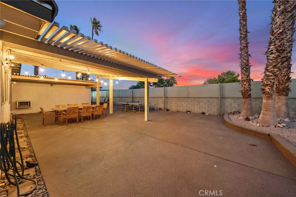 Discover the epitome of desert luxury with this fully furnished Palm Springs retreat, where retro charm meets modern elegance. Nestled on a sprawling 12,197 sq ft corner lot, this single-story gem offers breathtaking mountain views and mesmerizing desert sunsets, creating a serene backdrop for your everyday living or weekend getaways. Step inside to experience a seamless blend of style and functionality. The heart of the home is a beautifully remodeled kitchen, boasting sleek stainless steel appliances (new upgraded range and dishwasher), granite countertops, and an upscale moveable island prep area perfect for culinary adventures. A spacious pantry ensures ample storage, while the open layout invites effortless entertaining. This home features two luxurious primary suites, each with its own elegant ensuite bathroom. Two additional bedrooms and a full bath with convenient backyard access provide flexibility and comfort for family and guests. Enjoy the convenience of indoor laundry and the warmth of two inviting fireplaces. Every detail has been thoughtfully curated, from the unique doors and shiplap-lined closet to the striking painted wooden beams, barn doors, and built-in bookshelves. The primary suite is a personal sanctuary, complete with a painted sky ceiling that evokes a sense of tranquility. The private backyard oasis is a true highlight, offering a sparkling salt water pool with a soothing waterfall spillway, a rejuvenating spa, and a covered outdoor lanai perfect for al fresco dining. Gather around the firepit for cozy evenings, or challenge friends to a game of p
