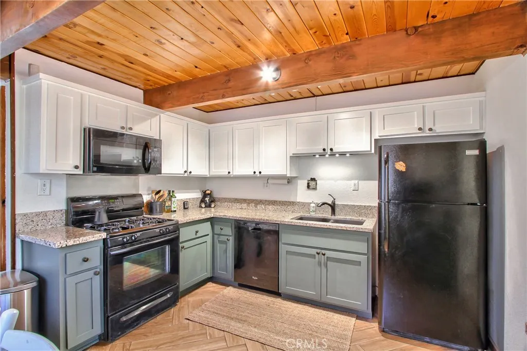 Super clean cabin with tons of pride of ownership. Kitchen has been remodeled with new cabinets and granite counters. Fantastic mud room off the back door with a washer and a dryer. New upscale tile floors downstairs. New toilet sink and faucet in bathroom. Quality appliances with a washer and a dryer! Mud room is a wonderful addition for anyone with doggies. . Gorgeous decks off the front and back as well as out the upstairs bedroom slider. Well laid out on the lot with a side yard and large storage shed. High wood beamed ceilings in the downstairs. Rock fireplace in the living room. Fully furnished except for a few items. Short drive to the slopes and the lake. Quiet, very woodsy neighborhood. This one really stands out. Can be furnished or unfurnished.