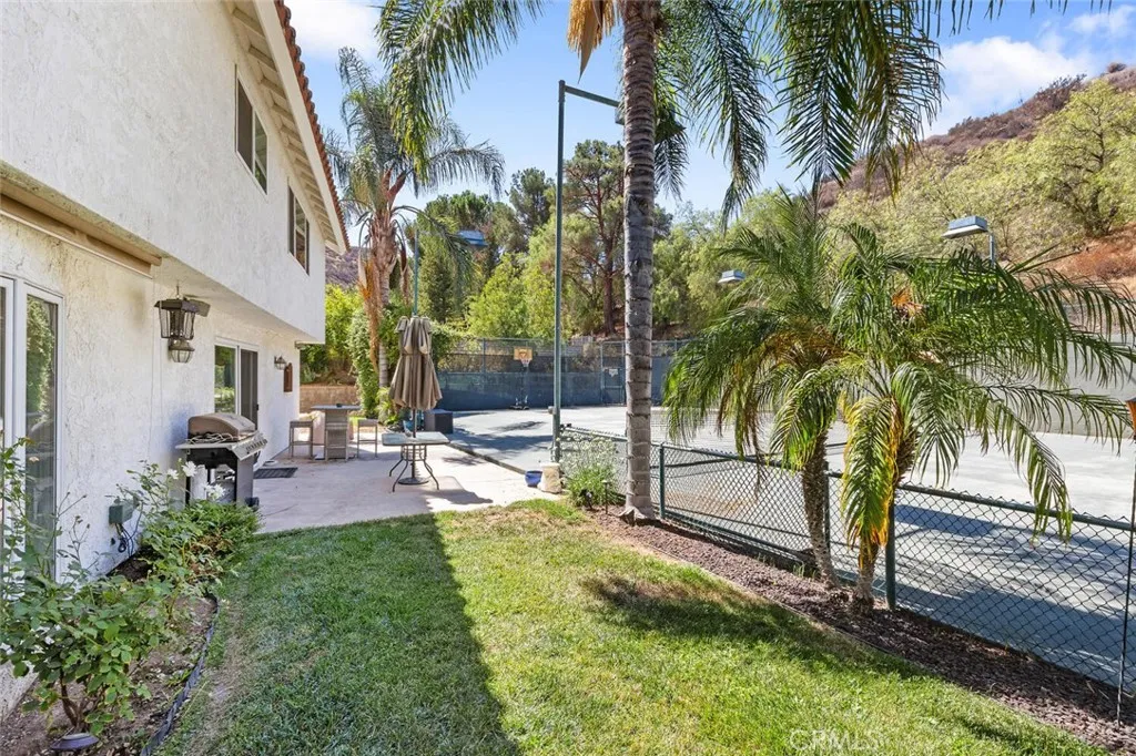 TENNIS ANYONE? This incredible Saugus home features RV Parking AND a full size, lighted Regulation TENNIS COURT plus tons of grassy space for outdoor enjoyment! Tucked away on a quiet cul-de-sac is the unique Saugus home on nearly 40,000 sq ft of private grounds features a one of a kind lifestyle! This 4 bedroom and 3 bathroom home is designed for both comfort and recreation! The expansive kitchen opens to the family room and living room with upgraded cabinetry, granite counters, center island with seating, stainless steel appliances and tons of storage! Outside, the private space offers a grassy play area with play area, spacious patios and tons of room to entertain! Upstairs, the private primary retreat offers a relaxing escape, with three nearby additional bedrooms. Conveniently located near award-winning schools, parks and shopping with streamlined access to the 14 freeway via Golden Valley! With no HOA and no Mello Roos, ample parking and outdoor amenities galore... this is a home you will cherish for years to come!