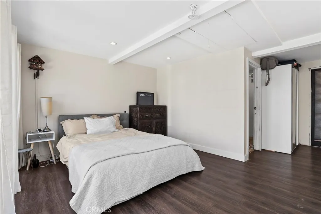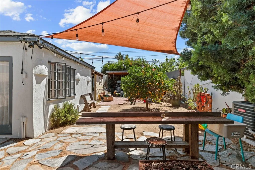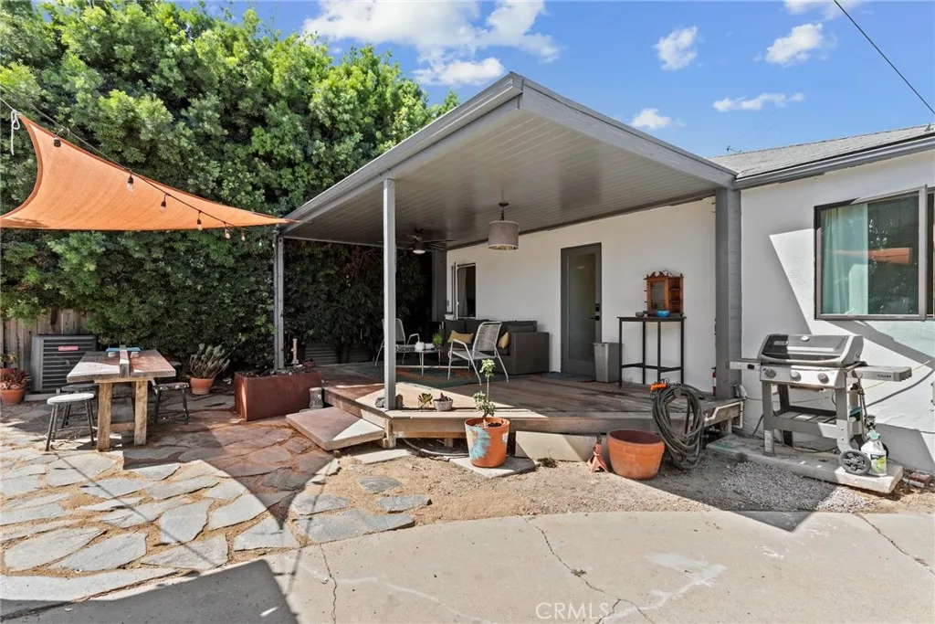 Charming Beach Bungalow with Endless Potential! Welcome to this quintessential beach bungalow that exudes warmth and character from the moment you step onto the darling front porch with its inviting Dutch door. The fenced-in front yard adds privacy and curb appeal, perfectly complementing the original rustic hardwood floors that flow throughout the home. Inside, the cozy living room features a gas fireplace and an open dining and kitchen concept ideal for both relaxing and entertaining. The kitchen is a cooks dream with double sinks, wood cabinetry, and a spacious walk-in pantry that offers maximum storage capabilities. The main house boasts two spacious bedrooms and a beautifully remodeled bathroom. Enjoy the modern touches of white subway tile, a sleek vanity, and a tub, all complemented by the convenience of a stackable laundry setup. Step outside to the Mangarus natural wood deck, which is termite-proof and shaded by a lovely wood canopy perfect for enjoying your morning coffee or evening breeze. The detached ADU (not permitted and originally the 2 car detached garage) features luxury vinyl floors and a stunning attached bathroom with caustic concrete tile, a step-in shower, and a modern vanity. Connected to the ADU is an art studio that can easily double as a gym, office, or creative workspace. The backyard is a true oasis w/so much potential....bring your ideas to create a perfect space for your family with Bose blue flagstone tiles and stamped concrete stepping stones leading to a charming brick patio, complete with extra storage and a large workshop equipped for a