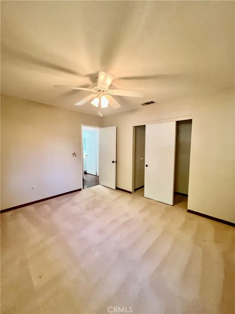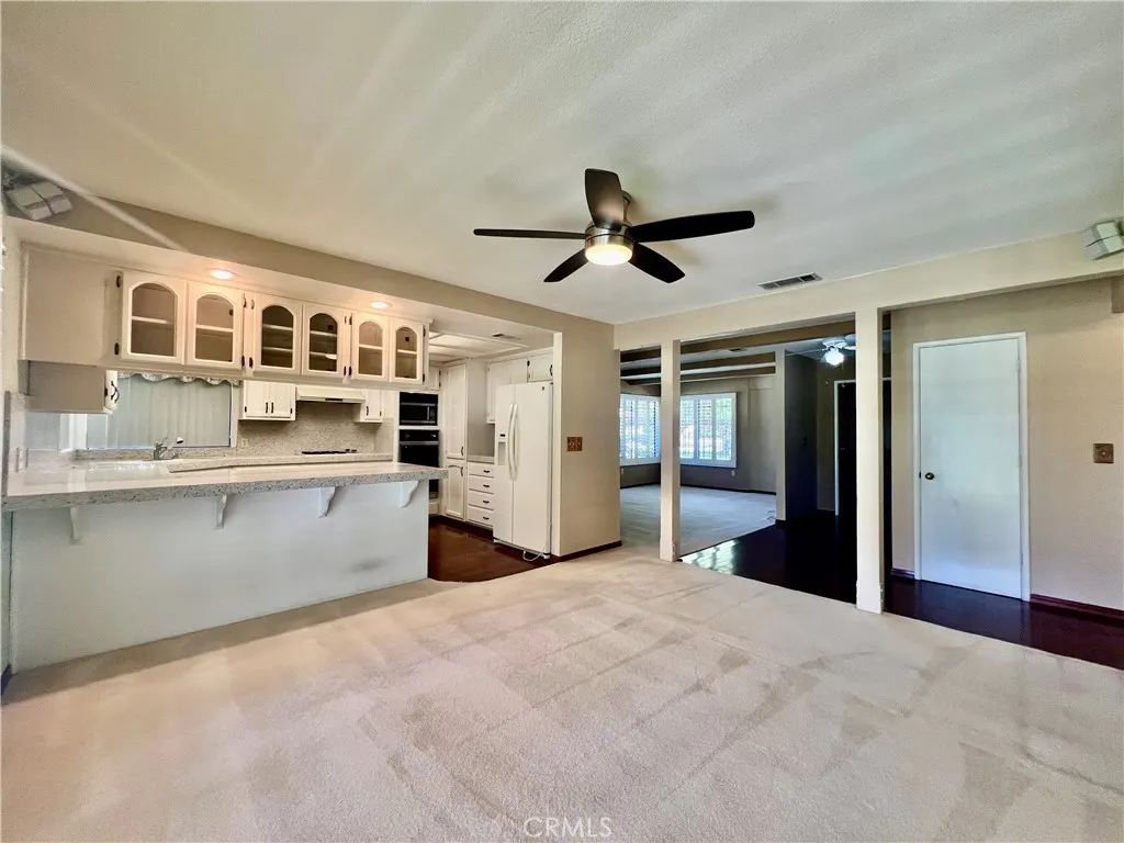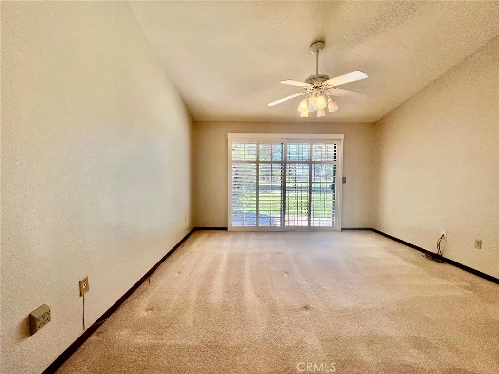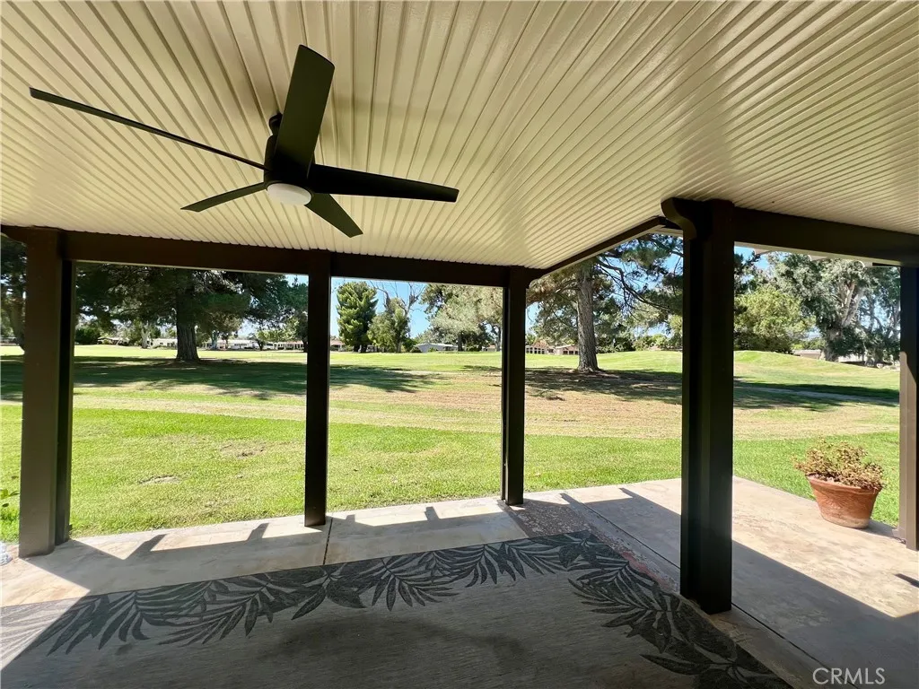 PRICE REDUCTION! This stunning, move-in-ready home in the highly desirable 55+ Seven Hills Golf Resort showcases panoramic golf course views from nearly every room and offers easy access to the pool and spa, Diamond Valley Lake, Temecula wine country, Palm Springs, snow-covered mountains, and the Idyllwild music scenewith San Diego, Los Angeles, and the Pacific Ocean just down the freeway. Featuring approximately 1,568 sq ft of living space, the home boasts beautiful hardwood flooring in the entry, hallways, and guest bathroom, freshly painted interiors with acoustic ceilings removed, three bedrooms, two bathrooms, and an oversized two-car garage with laundry area and French doors that open to the exteriorideal for an office setup. The concrete driveway accommodates up to four vehicles, while the spacious living room offers cathedral ceilings and a gas log-burning fireplace. The kitchen is equipped with ample cabinetry, upgraded quartz countertops, gas cooktop, built-in oven and microwave, dishwasher, garbage disposal, and refrigerator, with corner windows above the sink framing serene golf course views. A formal dining room with lighted ceiling fan, sliding glass doors, and custom wood shutters opens to a covered back patio perfect for entertaining. The master suite includes a lighted ceiling fan, sliding glass doors with custom wood shutters, mirrored wardrobe closet doors, and a master bath with tile countertops, dual vanity sinks, and a step-in shower stall with handicap grab bar. Additional bedrooms include a guest room with wardrobe closet and ceiling fan, and a third