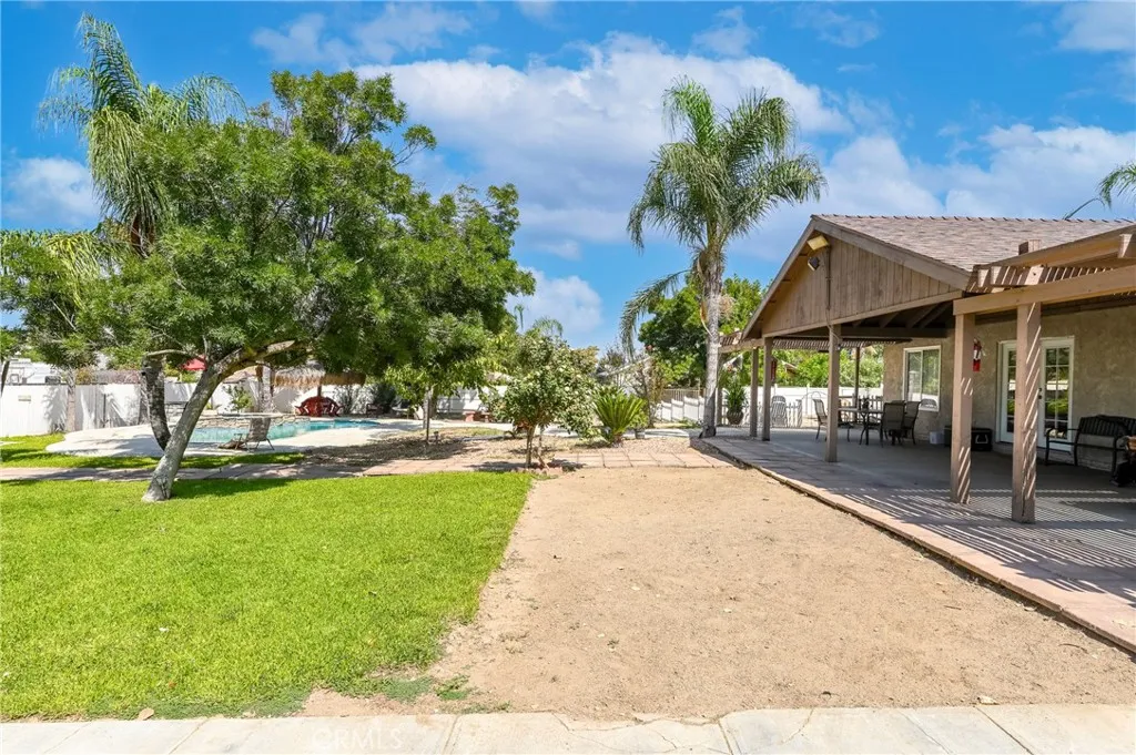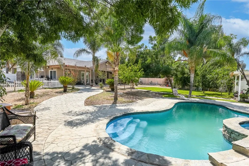 This expansive single-story ranch sits on just under 1 acre, offering privacy and a taste of rural life while still being connected to the community. The property includes a large in-ground pool and spa, a sizable covered patio for lounging. The mature queen palm trees and shrubs provide a park-like setting. This single-story 3-bedroom 2 bath home with a cozy fireplace and vaulted ceilings has plenty of room for family get togethers and for making new memories. An oversized 3 car garage provides plenty of space for vehicles and storage. Your family's perfect home awaits in this charming and spacious ranch, designed for both everyday living and unforgettable gatherings. Some of my favorite details of the home are in the backyard specifically the huge palapa shade , the cement table and fire-pit next to the sparkling pool. R/V parking is available with hook ups. Many residents in this community enjoy the scenic views of the rocky and rolling hills and nearby mountains, particularly during sunrise and sunset. Nuevo is known for its schools and country living. Popular near by amenities include Lake Perris, Perris Auto Speedway, DropZone Waterpark and a short drive to Temecula's wine country. Come see this beautiful home you won't be disappointed.