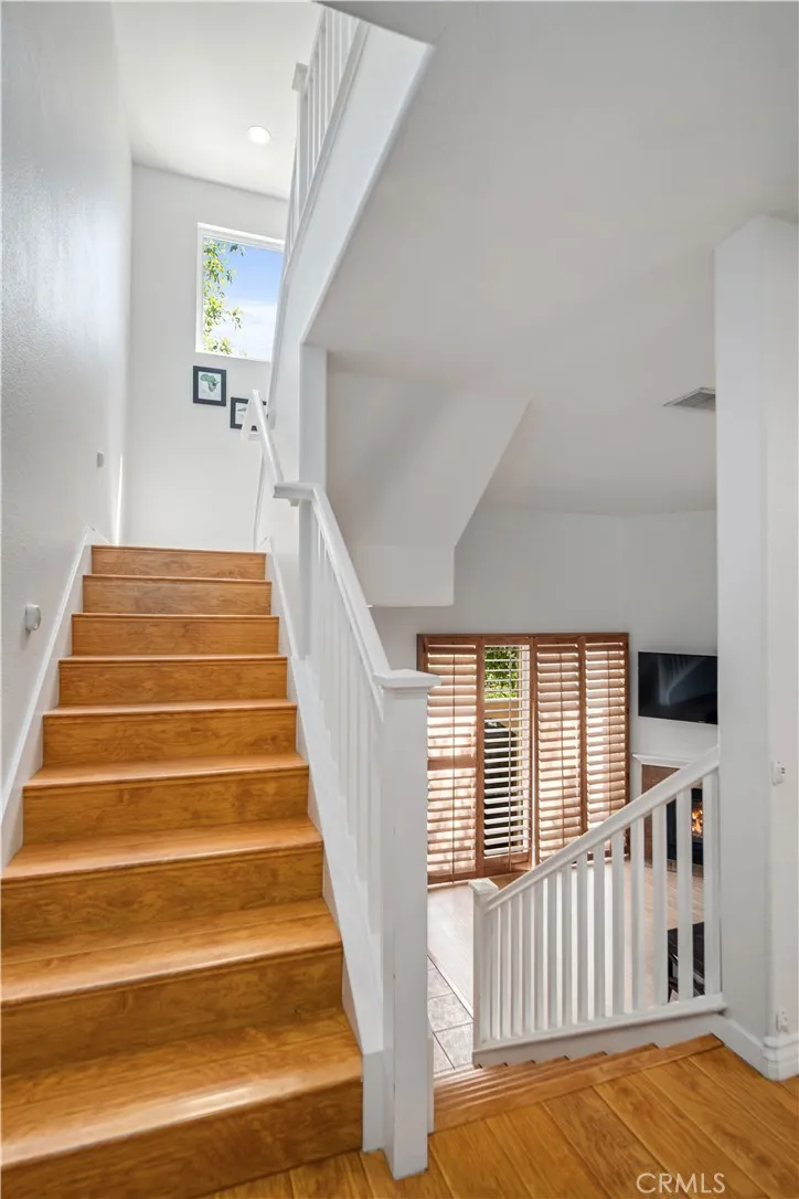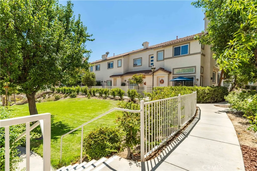 Fantastic, Turnkey 3 Bed 3 Bath Townhome. Located in the highly desirable Stevenson Ranch Community, this beautiful home offers 1,614sqft of living space, 2 car attached garage and a great floorplan. Entering the home, you will enjoy the high ceilings and crisp light of the versatile space perfect for a living room or sitting area, w/gas fireplace and access to the front patio. Moving up a short flight of stairs, you arrive at the mid level of the home that hosts a half bath and wonderful space that overlooks the entry and offers more versatility. From here there are sightlines to the beautifully updated kitchen featuring custom cabinetry w/pantry including pull-out drawers throughout for maximum convenience and LED recessed lighting seen throughout the home. The kitchen also offers stainless steel appliances, new ceiling fans & updated light switches w/dimmers. The kitchen is open to yet another sizable space, perfect for a family room or dining area. Proceeding to the top floor you will enjoy a large window that provides beautiful natural light on the open, airy staircase. Your first stop will be the generously sized primary suite that offers a bath with a dual sink vanity, separate shower area and a walk-in closet. Rounding out the upstairs are the remaining two, well appointed bedrooms and shared third bath. Also notable about this home is the newly (2024) upgraded HVAC system w/nest thermostat. Outside the home, you will enjoy the luscious landscaping and the view from your door of the beautiful greenbelt area that leads to the large community pool and spa area. This c