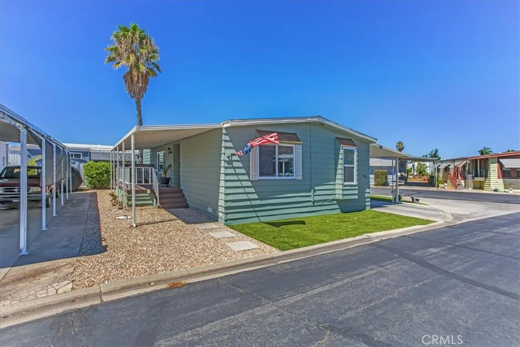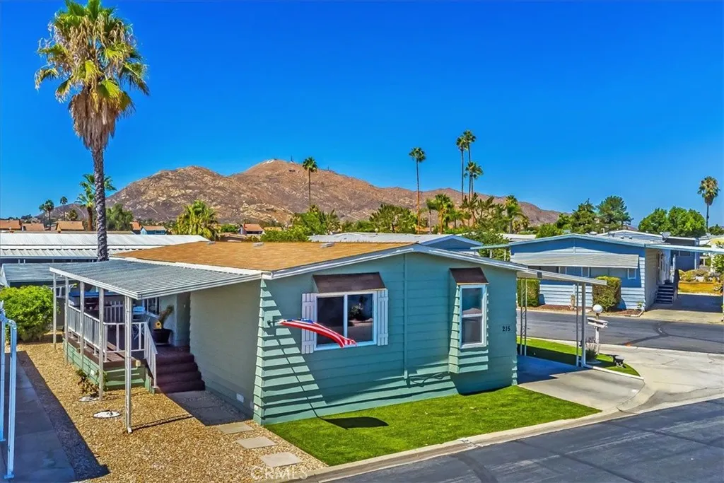 A well appointed recently renovated mobile home is located in a vibrant 55 plus upscale community complete with a fishing lake and so much more! This spacious TURN KEY AND WELL MAINTAINED home features new windows throughout, new water heater, new duct work, new exterior/interior paint. The peaceful front patio, featuring a new front door, is ideal for relaxing and enjoying a bbq with family and friends. The home also boasts an upgraded kitchen with quartz counter tops, designer backsplash, new oven/stove, and new high end laminate flooring throughout. The primary bathroom has been upgraded as well with a new walk-in shower, vanity, and countertops. New carpet has been installed in both bedrooms. This comfortable home also includes a workshop/ tool shed for handy man projects Moreover, the roof was replaced a few years ago. The home is strategically located on a large corner lot with gorgeous mountain views! Big box retail and well known restaurants are near by.