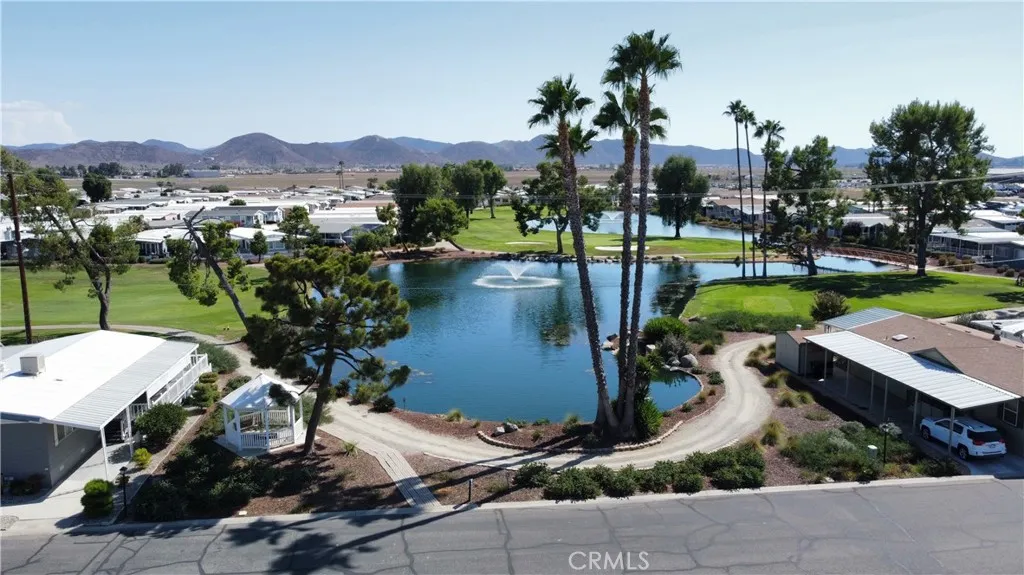Lakeside Luxury Home in The Lakes at Hemet West (55+ Community) Welcome to your peaceful lakeside retreat in one of Hemets most desirable 55+ communities. This spacious 1440 sq ft manufactured home is perfectly positioned on the lake, offering breathtaking views of the water fountain, with ducks and geese swimming by. Take in views of nearby mountainsall from your wraparound porch. The lake itself is a stunning feature, wrapping through the community with cascading waterfalls, walking paths, and lush landscaping that create a resort-like atmosphere. Inside, the home offers a comfortable and functional layout, ideal for both quiet living and entertaining. And the lifestyle.. Unmatched: 9-hole golf course included with space rent, plus Fitness center; Large swimming pool, BBQ area, Pickleball courts & horseshoe pits. Lakes stocked for fishing. Also, you're just minutes from shopping, dining, medical facilities, and have easy access to major roads for a smooth commute or weekend getaway. Whether you're an active retiree or simply seeking tranquility, this lakeside gem delivers comfort, connection, and convenience in one of Hemets most vibrant gated communities