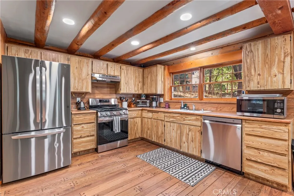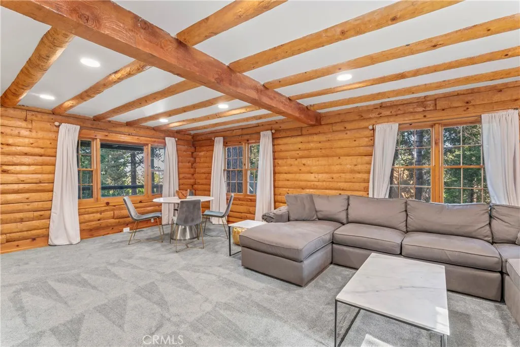 Welcome to Lake Arrowhead! This inviting custom log cabin blends rustic charm with modern comfort, offering over 2,400 sq. ft. of thoughtfully designed living space. With 3 bedrooms, 2 baths, and an attached garage, this home provides both convenience and character. Step inside to a spacious living room centered around a wood-burning fireplaceideal for creating warm, memorable gatherings. The adjacent gourmet kitchen and dining area feature generous space for preparing and enjoying meals together. A recreation room offers endless possibilities for games, hobbies, or relaxing movie nights. Outdoors, an additional lot expands your optionswhether you envision creating more outdoor living space, gardening, or simply enjoying the extra room. Surrounded by the natural beauty of the mountains and just minutes from Lake Arrowhead Village, shopping, dining, and the lake itself, this retreat offers a perfect balance of privacy and accessibility. Whether as a full-time residence or a mountain getaway, this property is ready to welcome its next chapter.