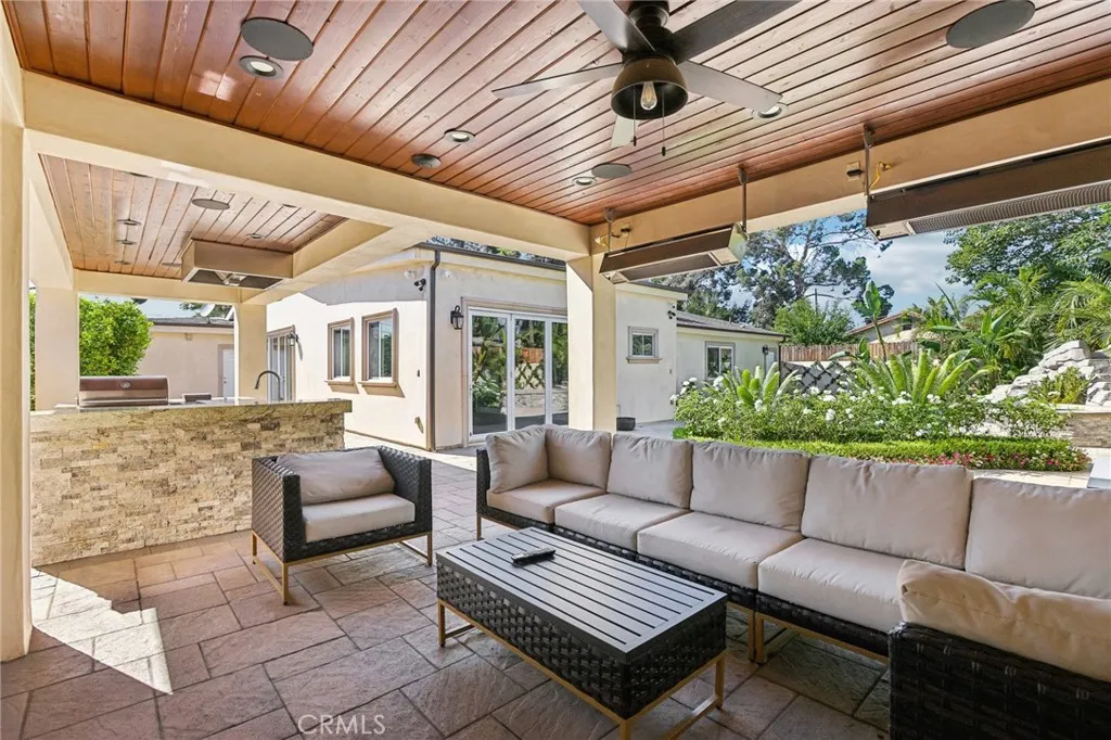 Welcome to 6850 Longridge Ave, a tastefully reimagined Mediterranean style villa featuring 3,450 sqft of living space designed with a light-filled, open floor plan ideal for large gatherings situated on an expansive 11,600 sqft lot! Upon entry you are greeted with an abundance of natural light, high ceilings, recessed lighting, and rich hardwood flooring seamlessly connecting the living room, kitchen, and family rooms. The chefs kitchen boasts an extended center island w/ additional seating, high-end stainless appliances, wine cooler, and plenty of cabinetry. The spacious primary bedroom features a spa-like en-suite bath and roomy walk-in closet with custom built-ins. A secondary bedroom also features an en-suite bath and the third bedroom is paired with a private bonus room. Both the interior & exterior of the home are wired with a high-end audio system catering to audiophiles for the ultimate listening experience. For those who love spending time outdoors, a resort-style backyard paradise awaits. Surrounded by palm trees, the covered patio & BBQ area overlooking the glistening pool, spa & firepit makes this an ideal, private setting for gatherings day or night. Additional highlights include a spacious garage w/ ample storage space to accommodate any buyers needs while the circular driveway can support parking for large families. Dont miss this one-of-a-kind home blending sophistication, comfort, and unforgettable entertaining spaces.