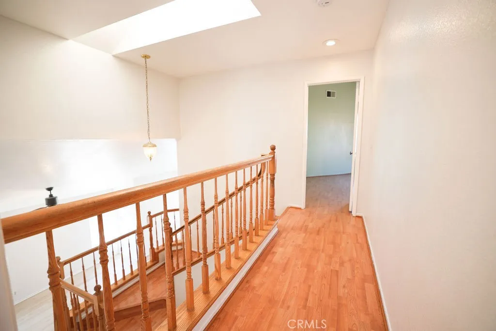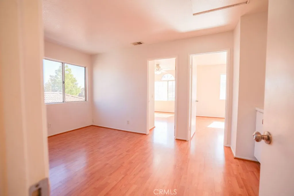 WELCOME HOME to Sunnymead Ranch! This stunning 5-bedroom, 3-bathroom residence is nestled in the highly sought-after community of Moreno Valley. From the moment you arrive, youll notice the freshly painted exterior, beautifully updated landscaping, and spacious 3-car garage. Step through the double doors into a bright, airy home with soaring ceilings and abundant natural light. The formal living and dining areas feature brand new Luxury Vinyl Plank flooring and fresh interior paint, creating a modern and inviting atmosphere. The heart of the home is the fully remodeled kitchen, showcasing new cabinets, quartz countertops, stainless steel appliances, and a farmhouse sink. A cozy breakfast nook flows seamlessly into the family room, complete with a charming fireplaceperfect for gatherings. Downstairs, youll find a private bedroom and remodeled full bath with a new vanity, ideal for guests or multigenerational living. Upstairs, a spacious loft provides extra living space, flanked by three bedrooms. The primary suite offers tranquil views of the backyard and a beautifully updated bathroom with a new vanity, making it the perfect retreat. The backyard is designed for relaxation and entertainment, featuring a serene pond with the soothing sound of running water and ample space for outdoor dining. This home is energy efficient with dual A/C units and solar panels that the buyer will need to take over payments on. As a resident of Sunnymead Ranch, youll enjoy resort-style amenities including a private lake, pool and spa, sports courts, parks, and picnic areas. Dont miss the chance