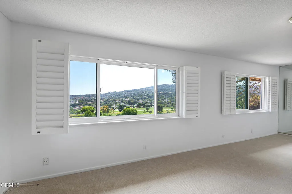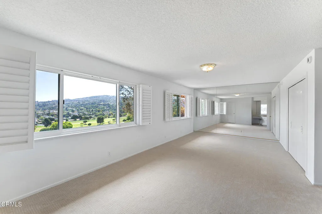 ***PRICE REDUCTION*** Views, views, views! This spacious Rolling Vista Town Club 2 bedroom, 2.5 bath townhouse welcomes you with views of blooming bougainvillea, lush green space and rolling hills. Offering 1,643 SF of living space, there is plenty of comfortable living space. While the home has 2 bedrooms, title records show that it is a 3-bedroom home. The next owner may want to downsize the huge primary suite to create an adjacent third bedroom. The heart of this home is the inviting living room, where two expansive dual-pane slider doors open onto a large balcony. This outdoor space provides an ideal space for morning coffee, evening relaxation or entertaining guests. The kitchen boasts newer appliances and offers a pleasant view of one of the complex's two glistening swimming pools. Upstairs, the spacious primary bedroom suite serves as a true sanctuary. Through its dual-pane windows, it mirrors the living room's expansive views, allowing you to wake up to the beauty of the surrounding landscape each day. The second bedroom features an attached full bath and is bathed in ample natural light. Additional features include a dedicated laundry room, direct-access oversized 2-car garage with a large storage area, freshly painted walls, and newly installed carpets. The appliances are included in the sale, including the GE gas stove, built-in microwave, Whirlpool refrigerator, and washer and dryer. The prime location, with its close proximity to shopping and major freeways, further enhances the appeal, offering a perfect blend of comfort, privacy, and convenience. The HOA dues