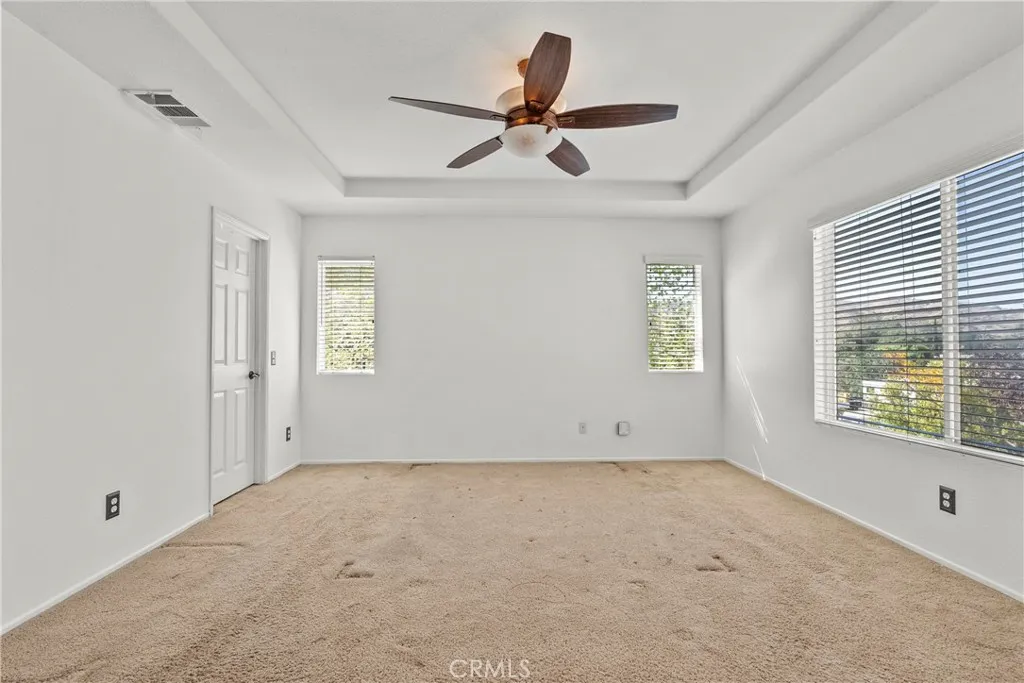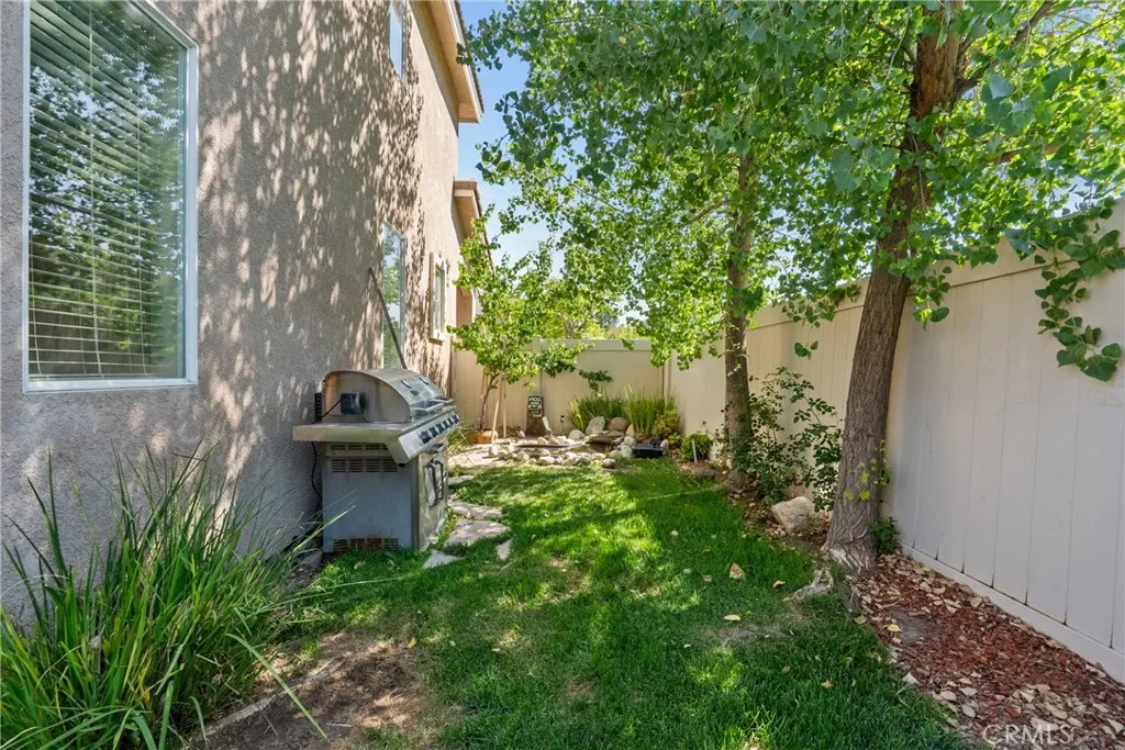 Wonderful former model home located at the end of a peaceful cul-de-sac in the desirable Mint Canyon community with one of the best locations in the neighborhood! This beautiful two-story home features 4 spacious bedrooms and 2.5 bathrooms. Inside, you'll find a light and open floor plan that is freshly painted with neutral tile flooring throughout the downstairs and carpet upstairs. The formal living room features a cozy fireplace and a built-in media center, while the adjacent dining area provides the perfect space for entertaining. The kitchen is both functional and stylish, boasting sleek granite countertops, an ample center island, breakfast bar, recessed lighting, large pantry with double doors, a double oven, built-in microwave, cooktop, and refrigerator. A charming dining nook with a stylish designer light fixture and French glass doors leads directly to the large backyard where youll enjoy stunning mountain views, an enchanting cobblestone patio area, built-in planters, a serene pond, BBQ area, and a private above ground spa - perfect for playing with a pup, relaxing, or hosting your friends and family. Upstairs, the loft area features a built-in office nook perfect for working from home or doing homework, and the laundry room offers added convenience. The primary suite is a true retreat with dual walk-in closets, a spa-style bathroom complete with an oversized jetted tub, dual sinks, separate shower, and a private toilet room. Additional upgrades include a surround sound system, pre-wired alarm system, ceiling fans, huge additional storage space beneath the stairw